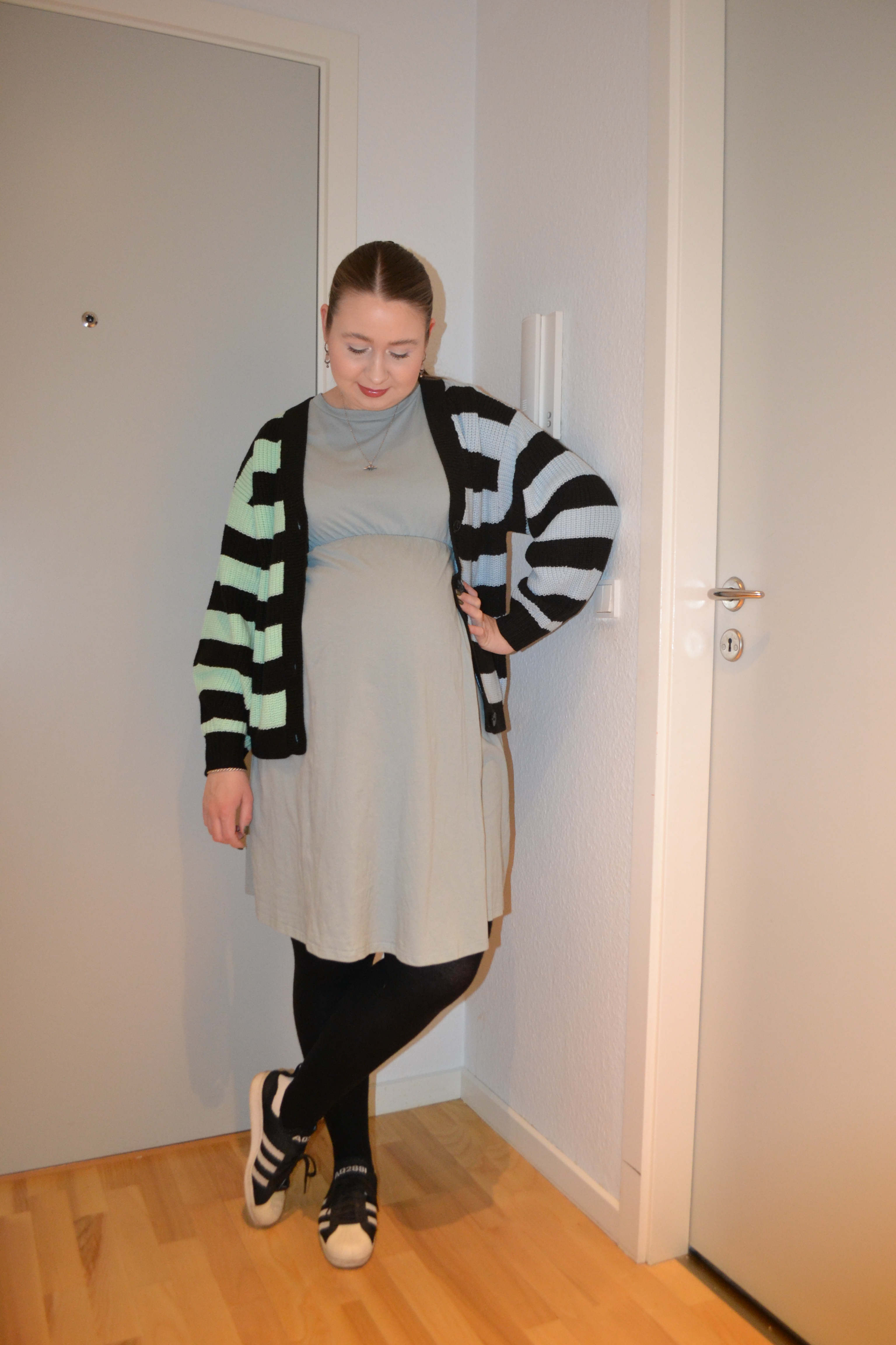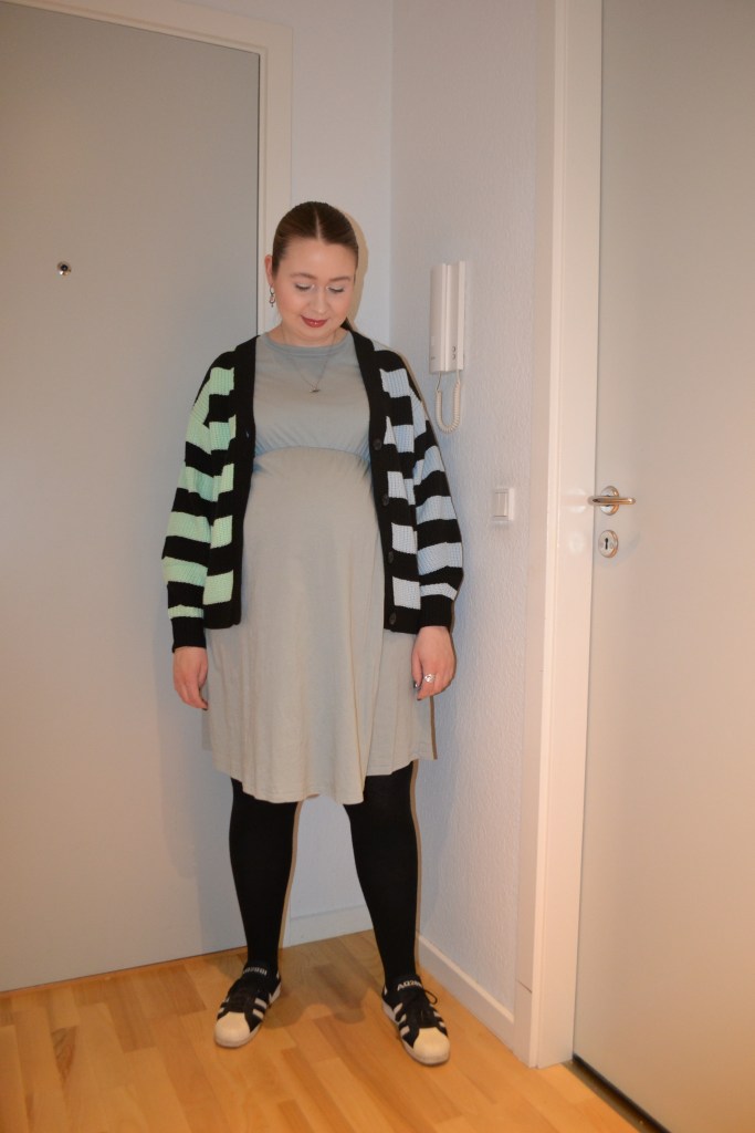 Pretty simple and comfy Posted on November 8, 2022 by Mucha-Lucha Here’s what I wore Friday October 14. A pretty simple and comfy outfit for one of my last days of pregnancy. (Cardigan – H&M, dress + tights – H&M MAMA, sneakers – Adidas) Share this: Click to share on X (Opens in new window) X Click to share on Facebook (Opens in new window) Facebook Like Loading... Related