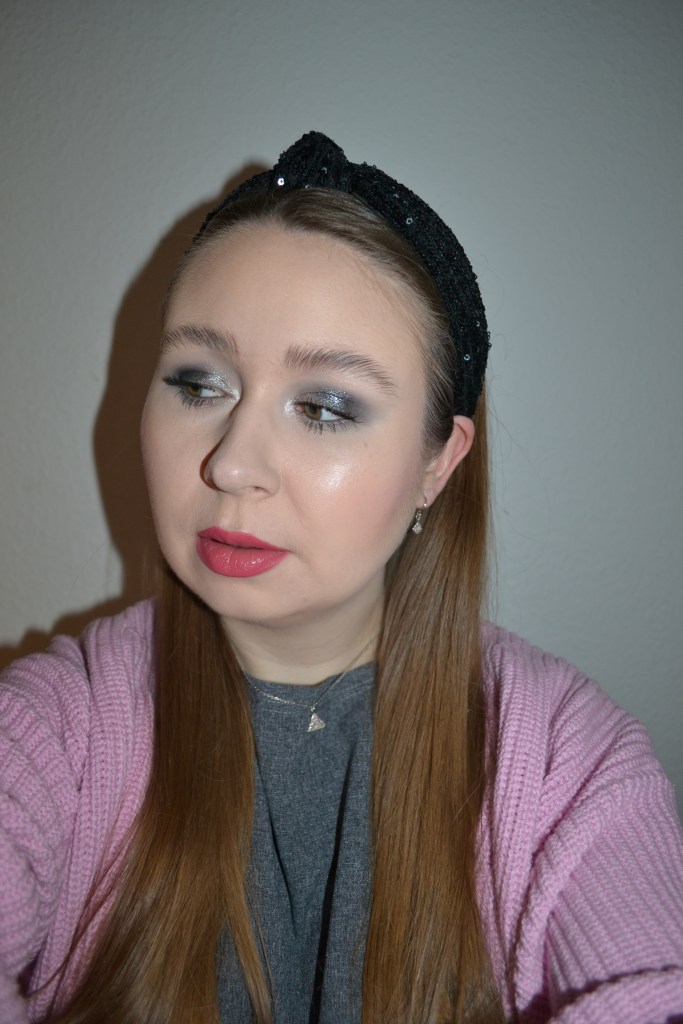 (Base: primer – Maybelline Instant Anti Age Perfector 4-in-1 Glow Makeup (shade: 00 Fair Light), foundation – Maybelline Dream Urban Cover foundation (shade: 100 Warm Ivory), concealers – Rimmel The Multi-Tasker concealer (shade: 020 Fair) + NYX Born To Glow radiant concealer (shade: Pale), powder – Fenty Beauty Pro Filt´r Instant Retouch setting powder in Butter. Face make-up: The Balm Take Home The Bronze bronzer in Oliver, blusher – MAC Mineralize blush in Humour Me, highlighter – Essence Make Me Glow baked highlighter in 10 It’s Glow Time!. Eye make-up: eyeshadows – e.l.f. Cosmetics No Budge matte shadow stick in Lava Lamp + Oden’s Eye x Angelica Hela eyeshadow palette (shades: Moss + Golden Bridge + Fluorescence) + MAC Nylon eyeshadow, mascara – Pat McGrath Labs Dark Star mascara, eyeliner – Oden’s Eye Solmåne II gel liner in 006 Green Tea. Eyebrows: Anastasia Beverly Hills Brow Freeze + Maybelline Brow Ultra Slim pencil in Medium Brown. Lips: Jeffree Star Cosmetics Velour lip liner in Blue Velvet + Jeffree Star Cosmetics Velour liquid lipstick in Blue Velvet)