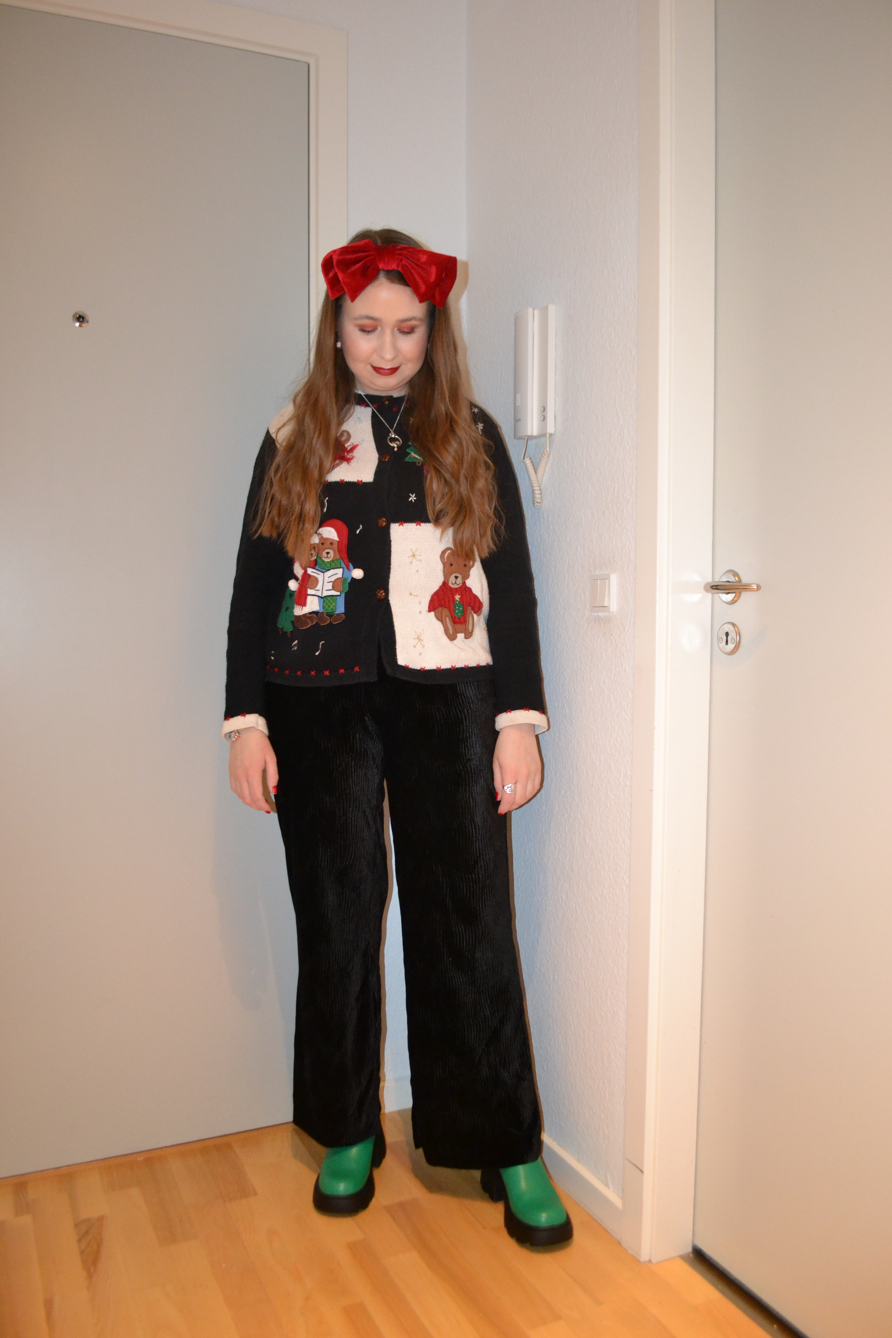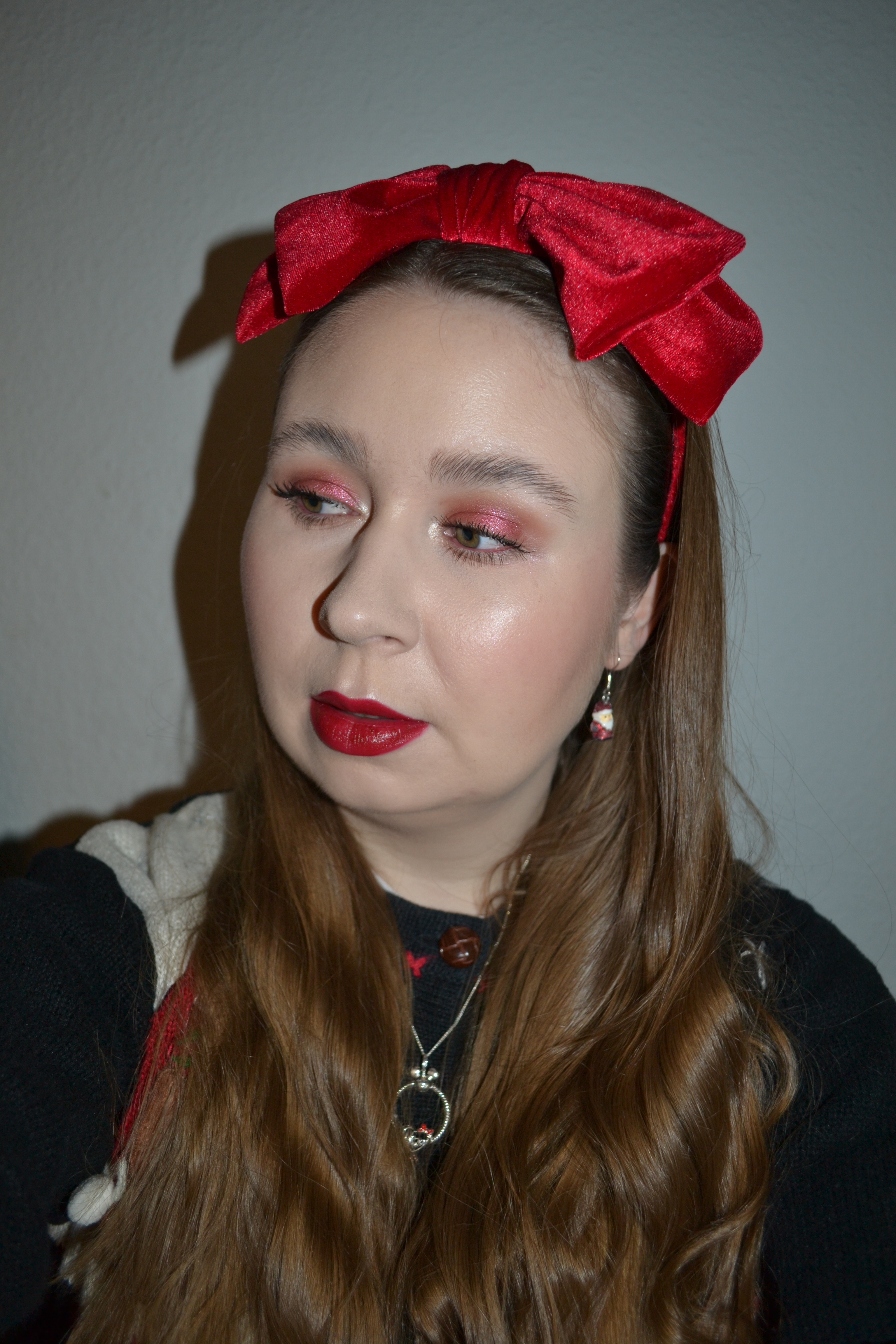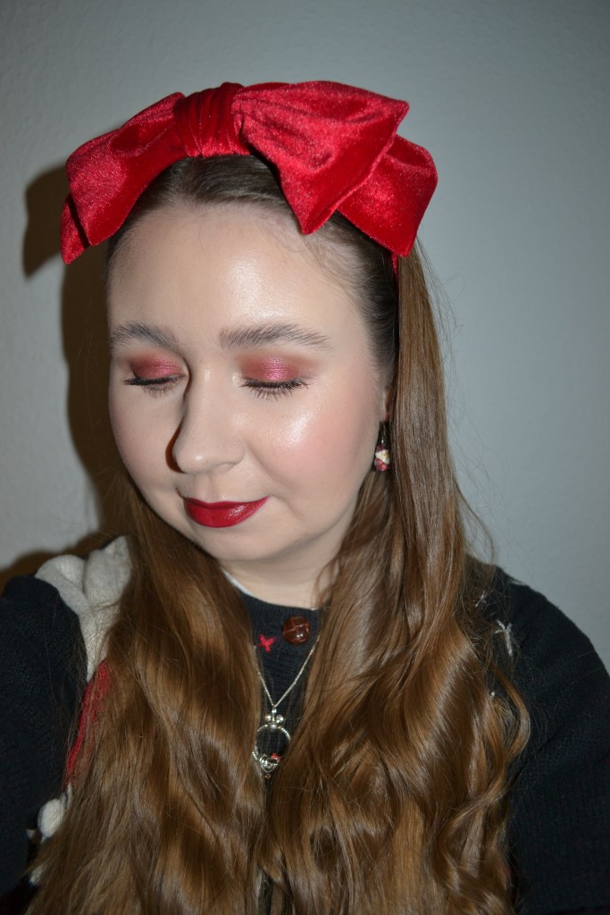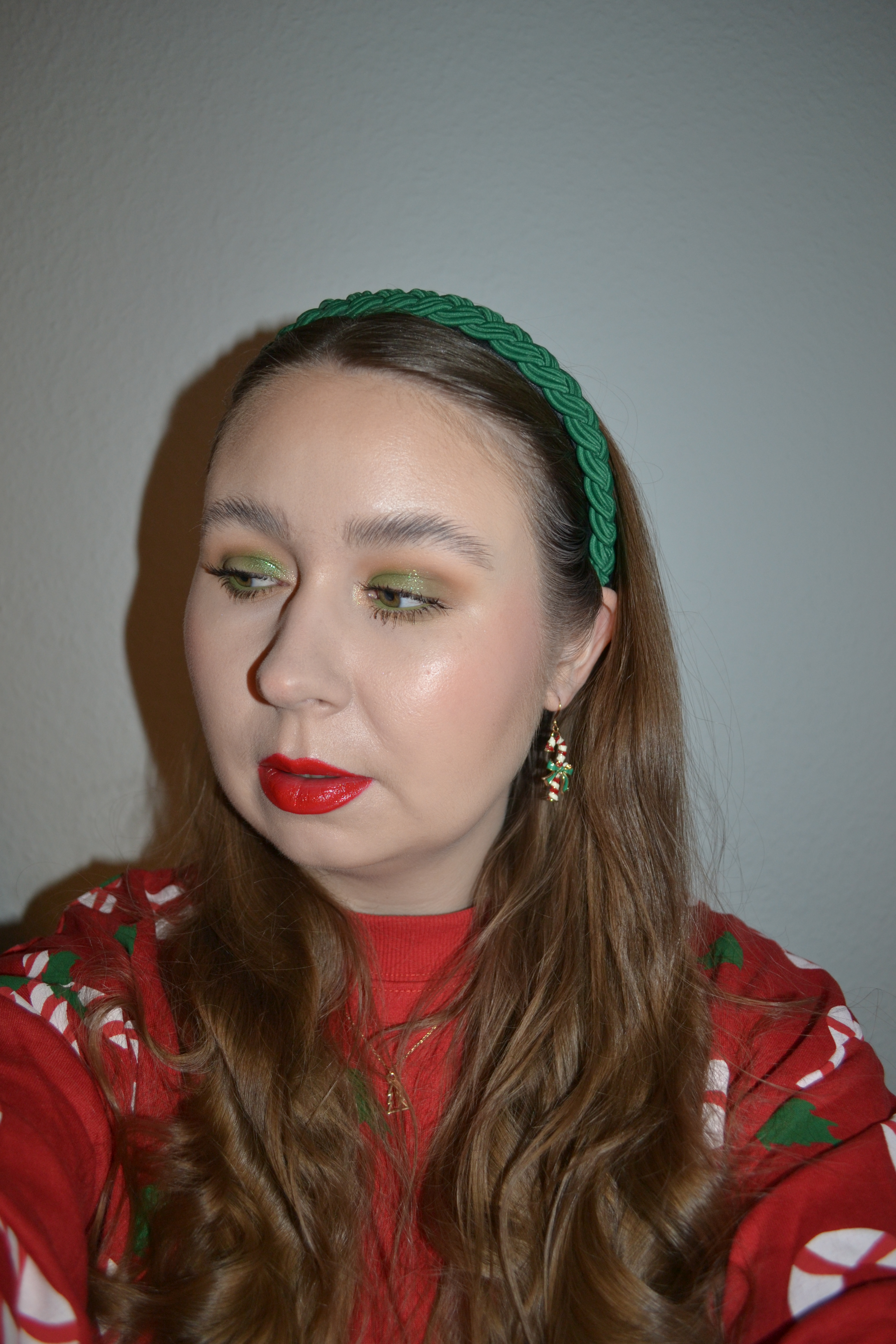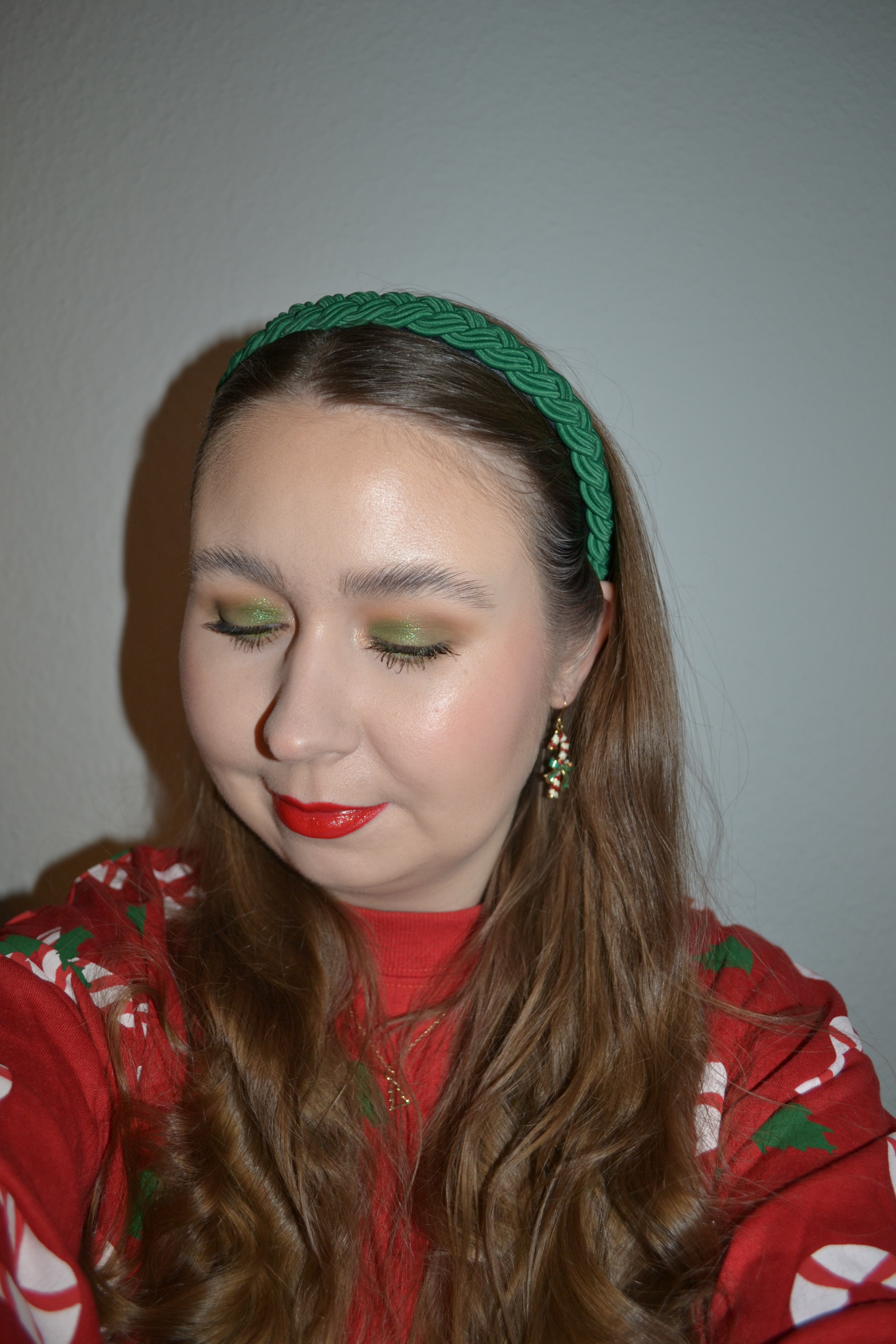Here’s the make-up I wore Friday December 16. I didn’t get an opportunity to take pictures of my outfit that day, since it’s a bit more time consuming. However, I can quickly take pictures of my make-up, so here’s another green and red Christmas look.