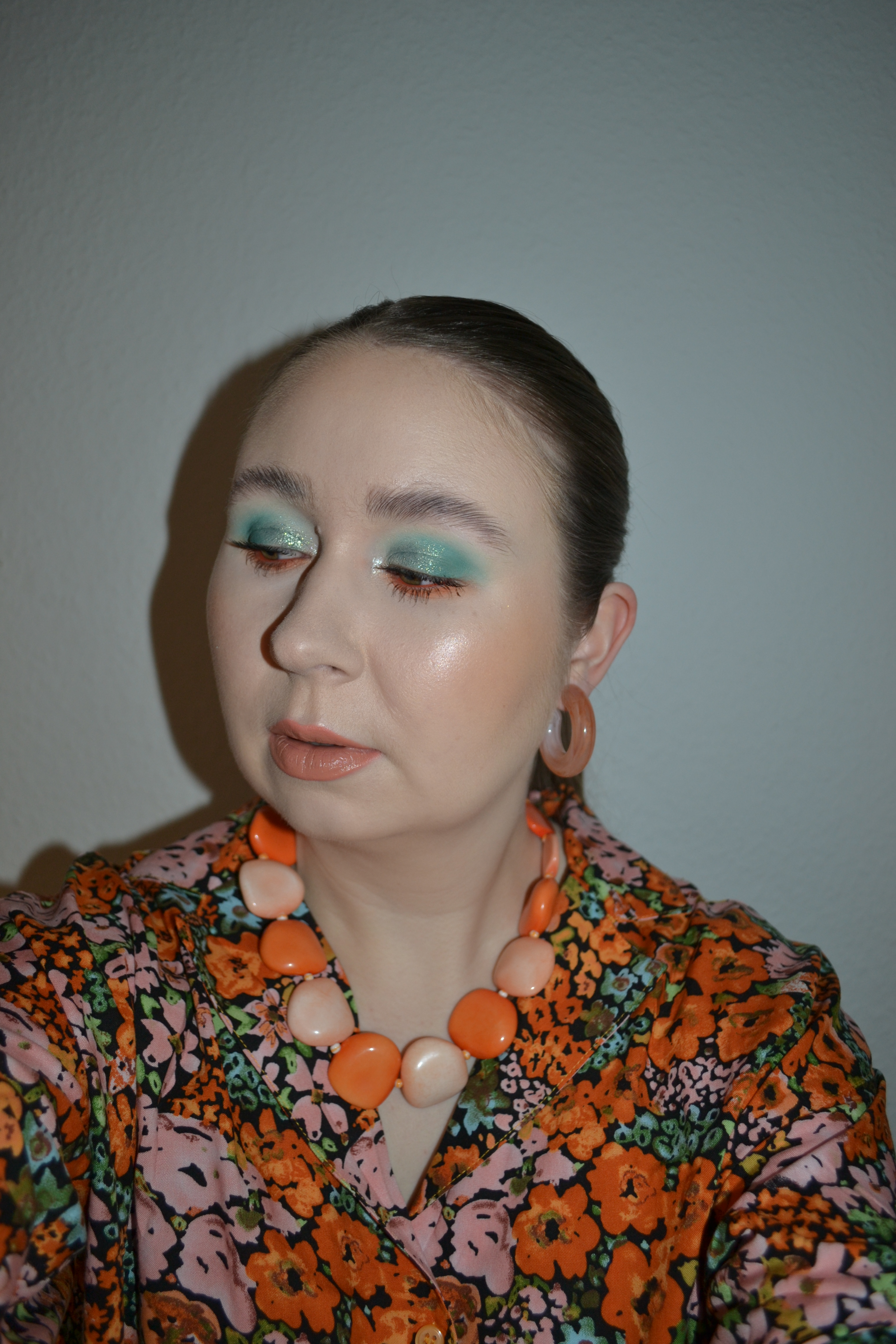 Here’s the make-up I wore with this outfit. I’m not sure I like the light peachy nude lip, but I think the eye look is very pretty.