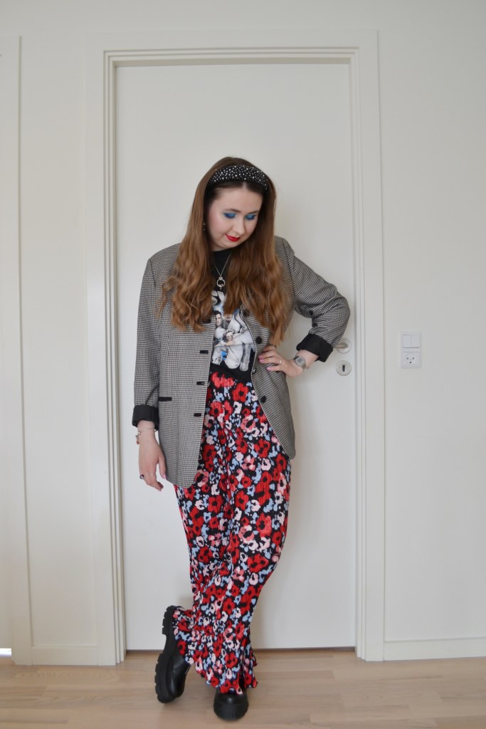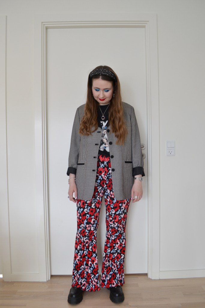 Oversized and flared Posted on May 16, 2023 by Mucha-Lucha Here’s what I wore Saturday April 29. I love the look of an oversized blazer with wide leg or flared trousers. (Blazer – second hand, T-shirt – Reclaimed Vintage, trousers – Monki, shoes – Asos Design) Share this: Click to share on X (Opens in new window) X Click to share on Facebook (Opens in new window) Facebook Like Loading... Related