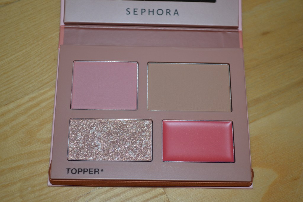 Here’s a closer look at the Sephora Collection Color Shifter face palette in Rose Fantasy. It includes a powder blush, a powder bronzer, a shimmery topper, and a cream blush.