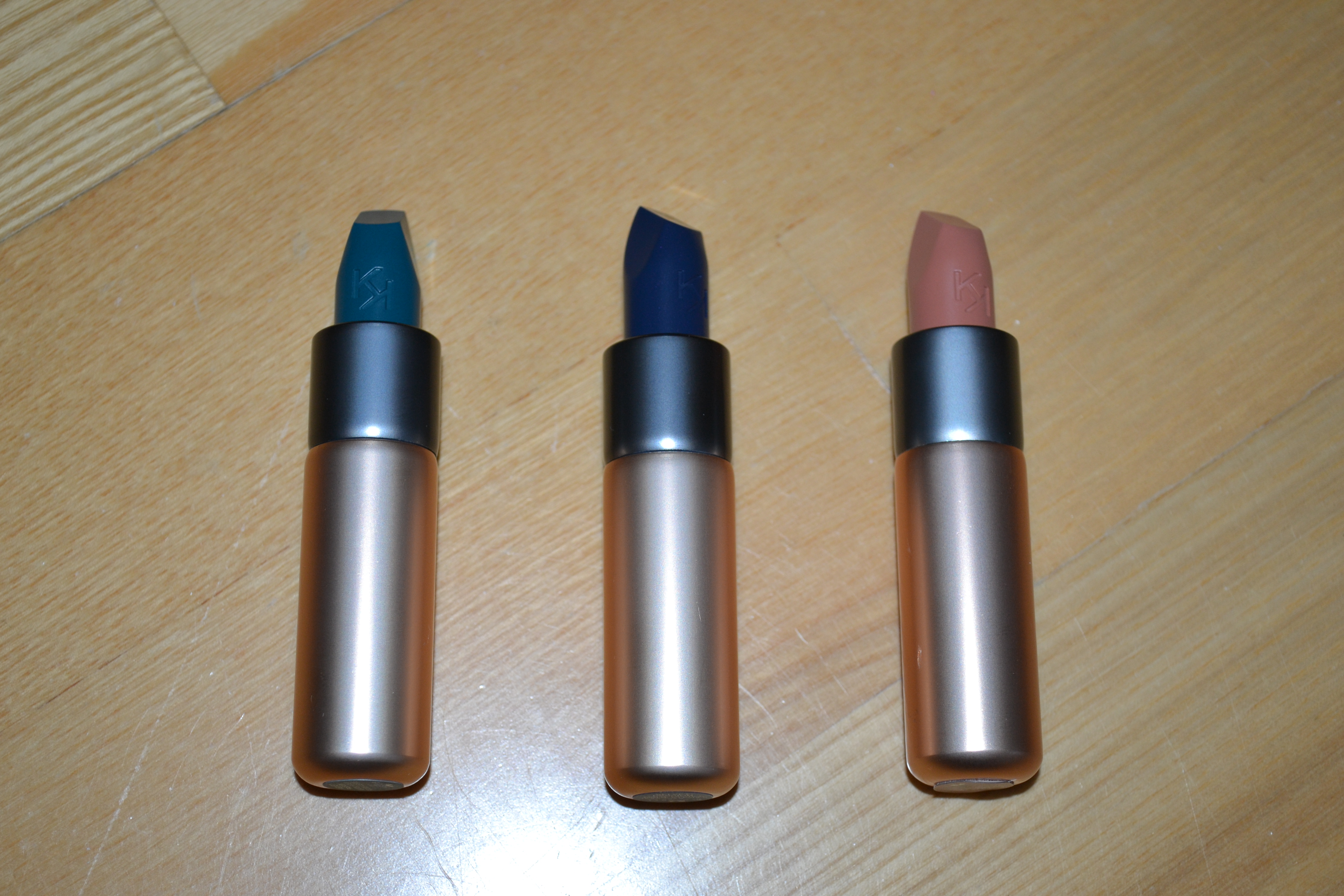 I also purchased three of the Kiko Milano Velvet Passion matte lipsticks. I picked the shades Sapphire Green, Imperial Blu, and Light Sienna. I wore the navy blue one here.
