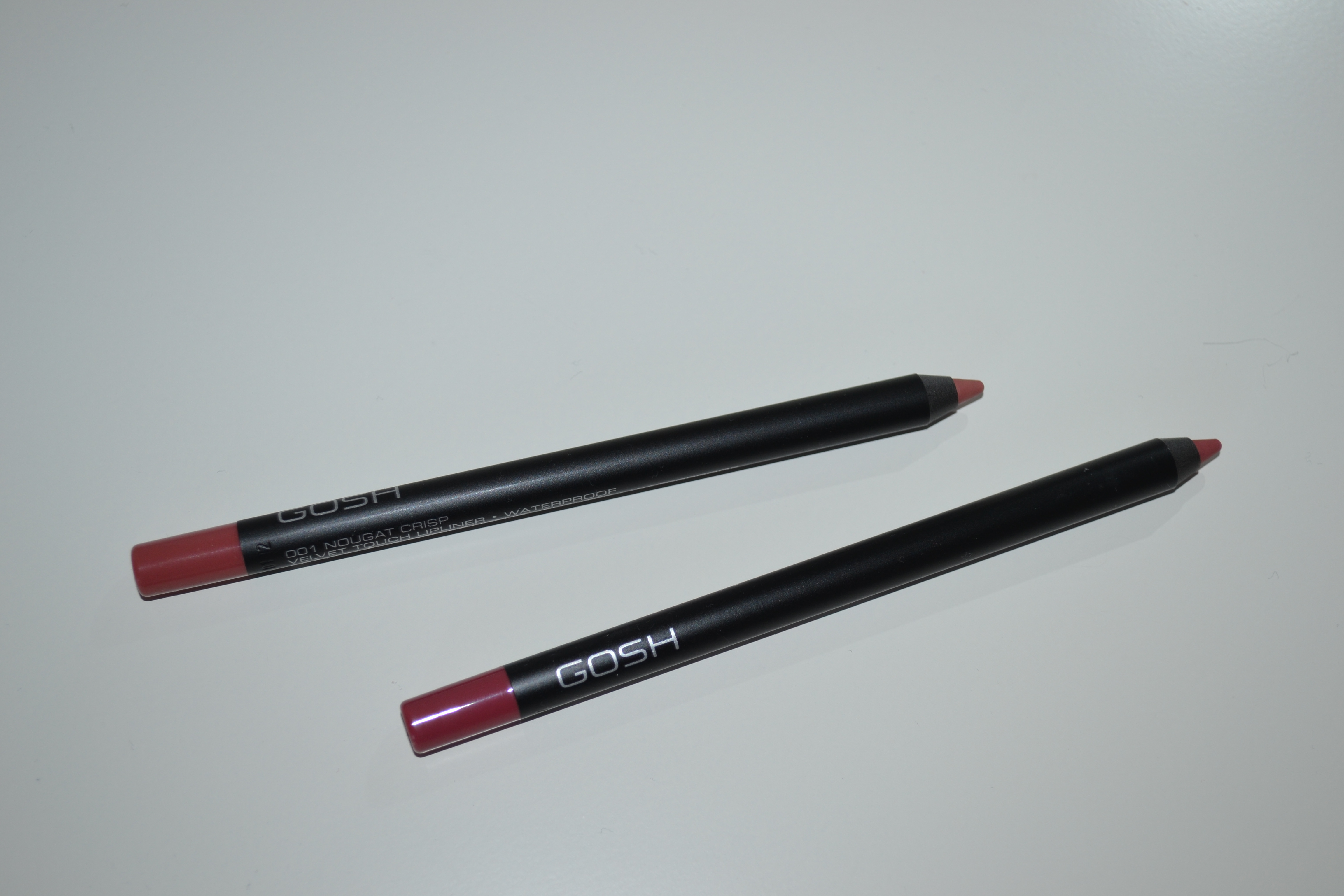 From Matas (the Danish drugstore) I picked up two more of the Clarins Instant Comfort lip oils. I got 04 Pitaya and 08 Strawberry. This is one of my favourite lip oil formulas if not my top favourite. I also purchased two Gosh Velvet Touch lip liners. They’re in the shades 001 Nougat Crisp and 002 Antique Rose, and they’re both beautiful shades.