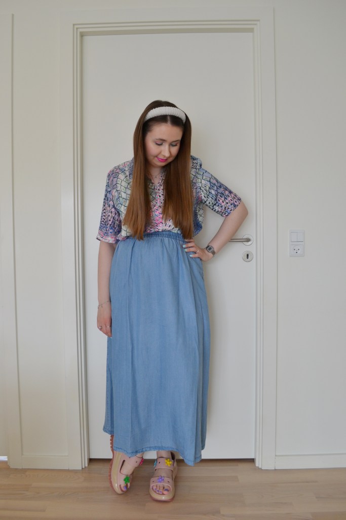 Lightweight denim skirt Posted on June 9, 2023 by Mucha-Lucha Here’s what I wore Monday May 15. I hadn’t worn a skirt in ages, and I’m not quite sure why. This new denim one was very nice and lightweight and perfect for slightly warmer weather. (Shirt – second hand, skirt – H&M, sandals – Crocs) Share this: Click to share on X (Opens in new window) X Click to share on Facebook (Opens in new window) Facebook Like Loading... Related