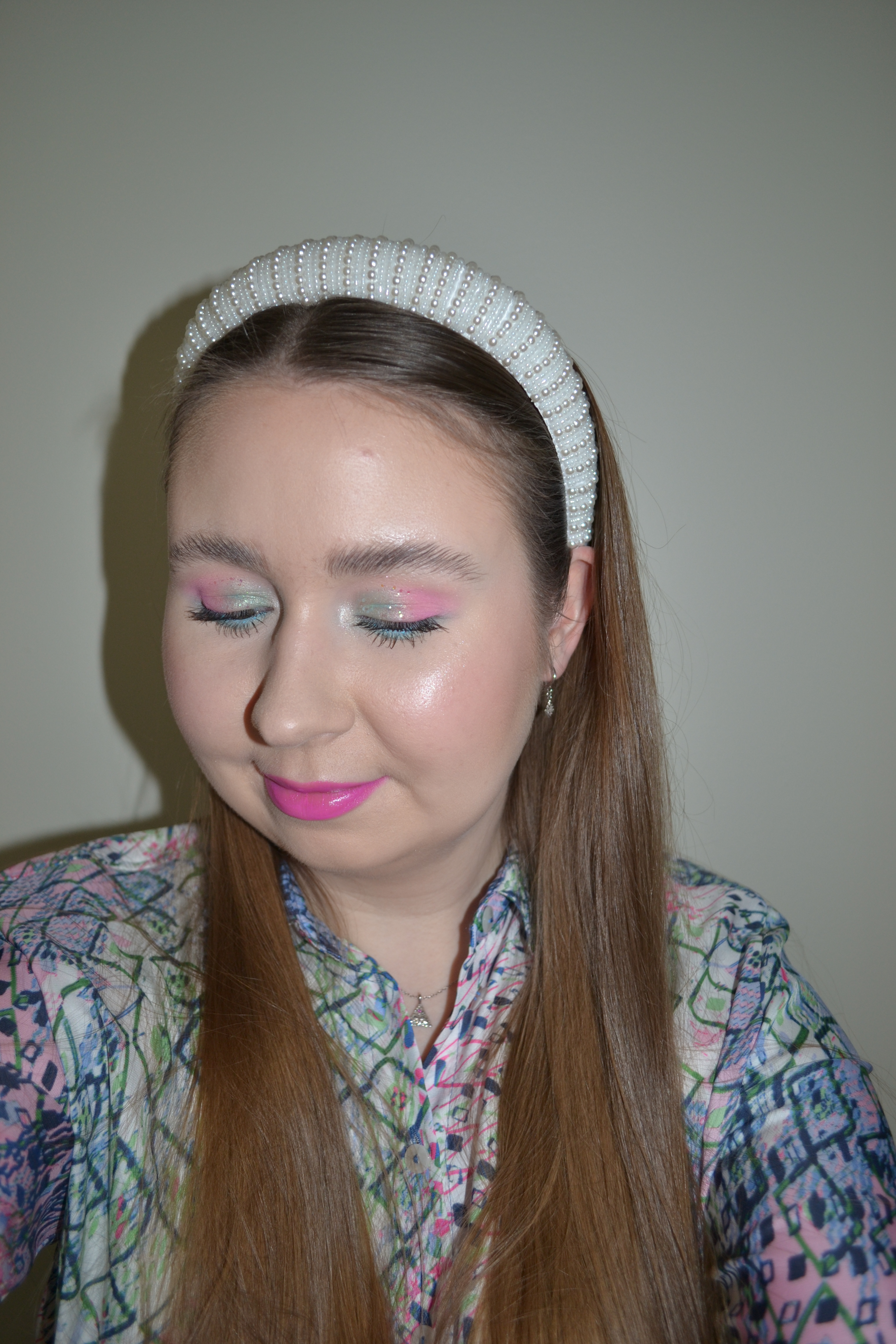 Here’s the make-up I wore with this outfit. You know I love a pastel look, and I think this one turned out pretty cute. I especially love the chunky glitter on my eyelids.