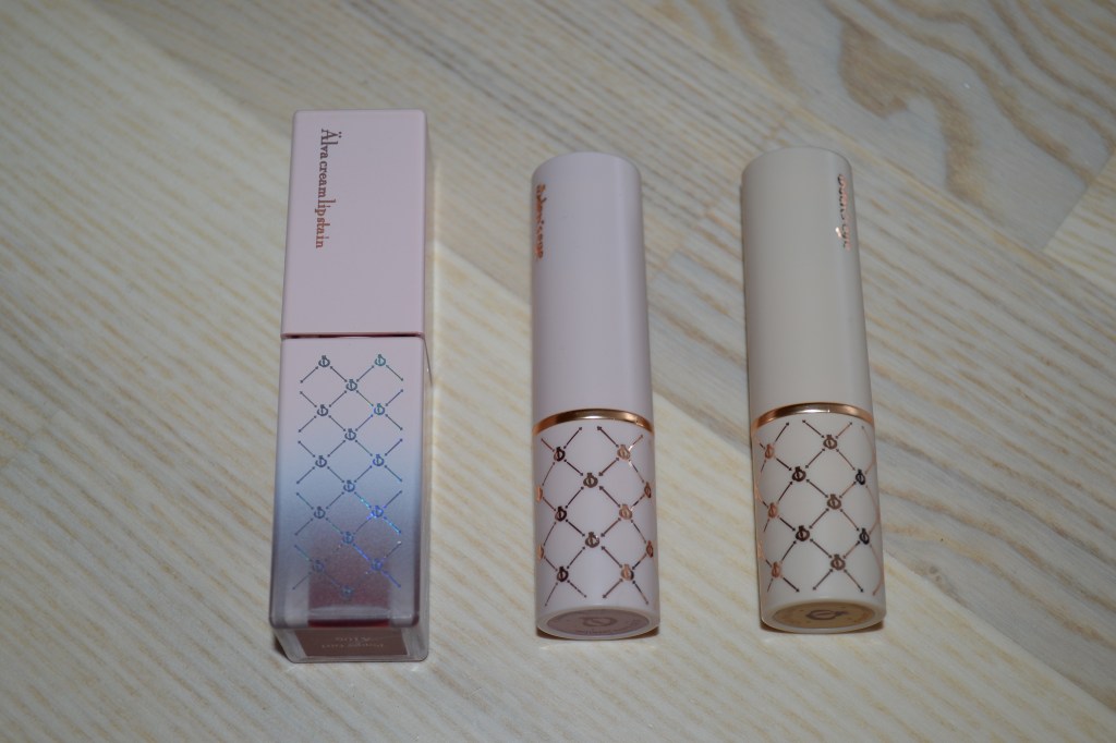 Lastly, I purchased three lip products. I got one more of the Alva cream lip stains, because I really liked the first one I bought (which I’m wearing here). This one is in the shade A106 Poppy Girl. I also picked up one of the Alva Kiss of a Fairy cream lipsticks in S102 Love Jasmine and one of the Alva Kiss of a Fairy velvet lipsticks in L203 Fig Jam. I love the packaging of the Oden’s Eye products.