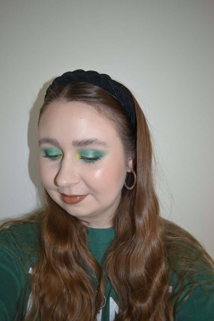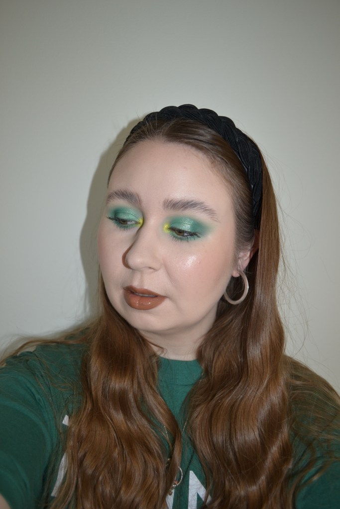 Here’s the make-up I wore with this outfit. I love how this green eye look turned out. The tones matched my T-shirt perfectly.
