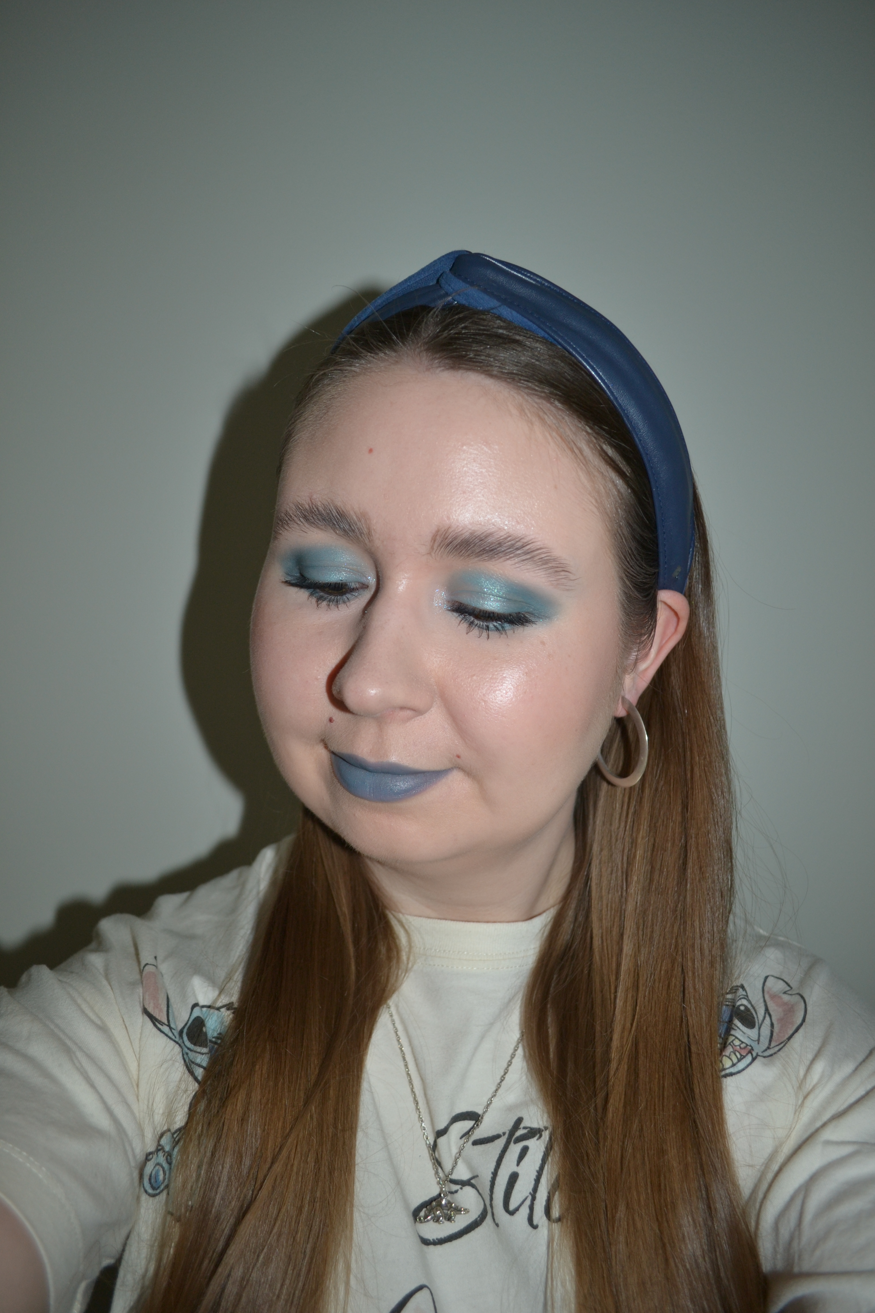 Here’s the make-up I wore with this outfit. As I wrote in my outfit post, I really wanted to wear this blue lipstick, so I tried to do a matching eye look using cream eyeshadows, but sadly they creased a lot. I like the blue shades though.