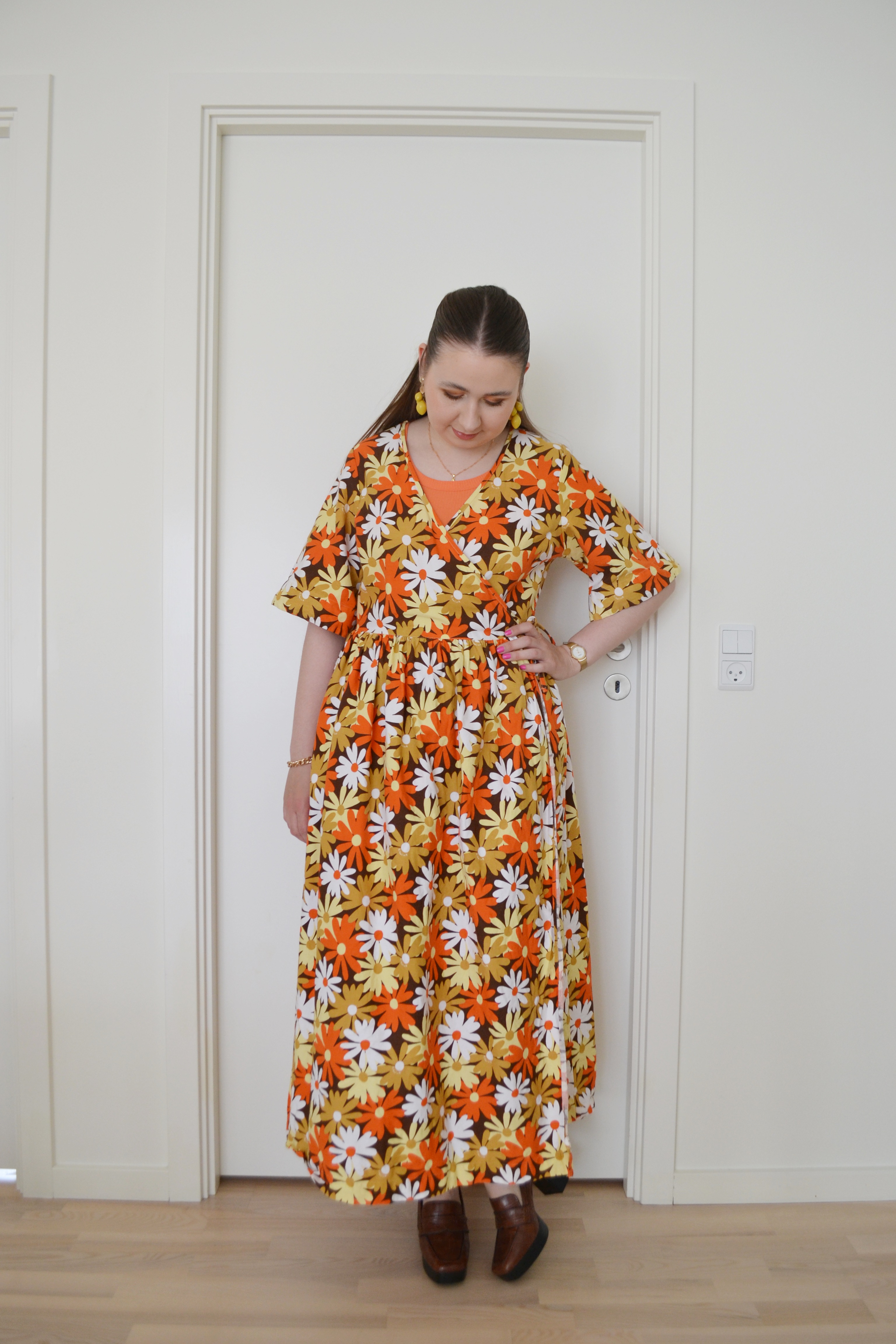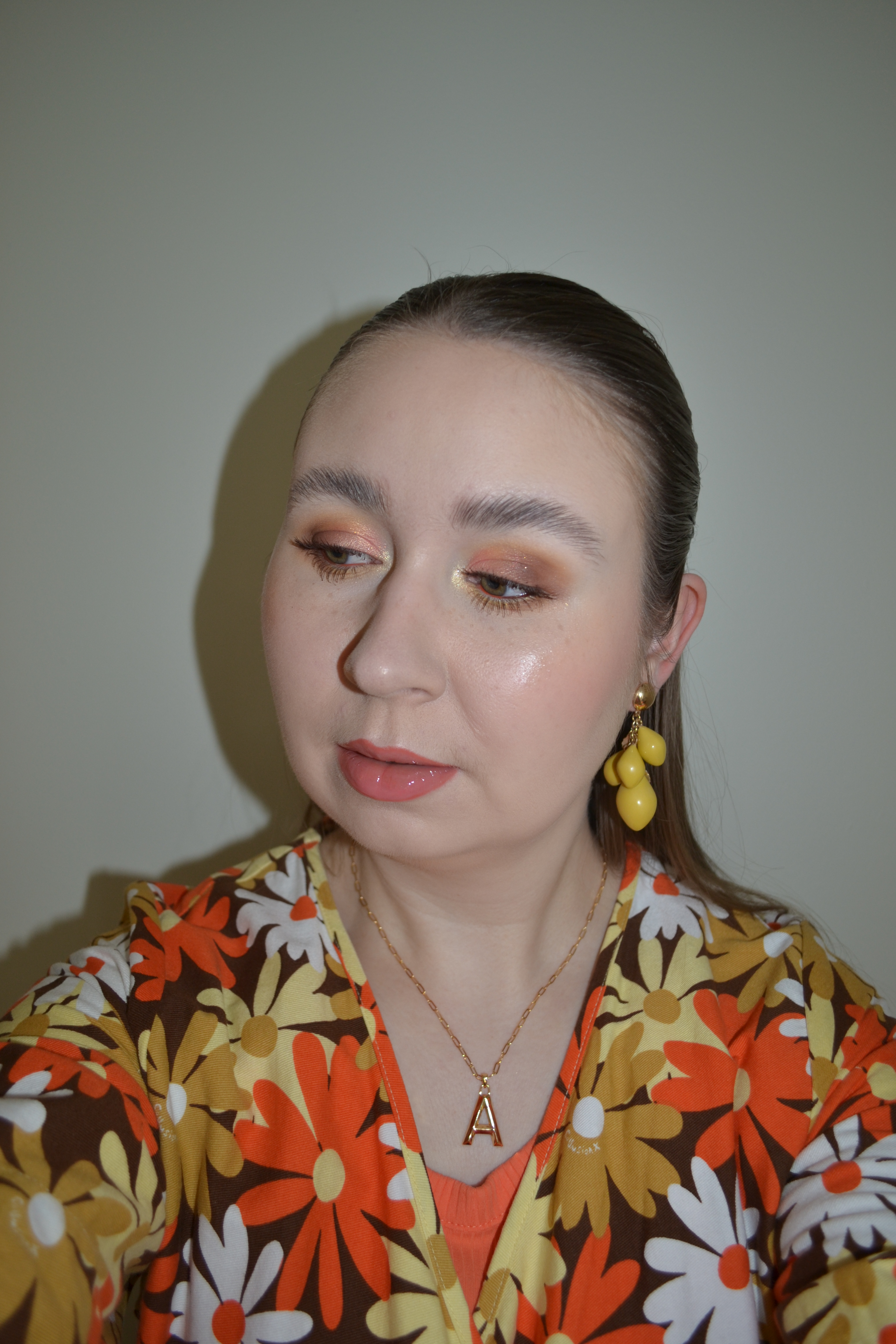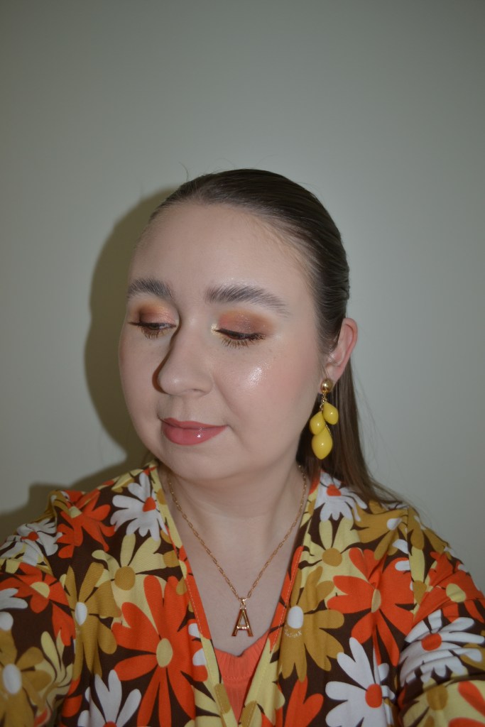 (Base: primers – Danessa Myricks Beauty Yummy Skin Blurring Balm Powder (shade: Universal) + Catrice The Glowifier illuminating primer in 010 Glow Rush, foundations – Sephora Collection Best Skin Ever foundation (shade: 10 N) + Revolution Conceal & Define full coverage foundation (shade: F0), concealers – e.l.f. Cosmetics Camo colour corrector (shade: Yellow) + NYX Bare With Me concealer serum (shade: 02 Light), powders – Essence Brighten Up! Banana powder in 10 Bababanana + Sigma Beauty Soft Focus setting powder in Vanilla Bean, freckles – KimChi Chic Candy Girl Fake Freckles in Afternoon in The Flower Field. Face make-up: bronzer – Anastasia Beverly Hills Cream Bronzer in Sun Kissed, blusher – Colourpop Super Shock cheek in Doozie, highlighter – MAC Strobe Face Glaze in Punk In Spice. Eye make-up: base – Sigma Beauty Eyeshadow Base Primer in Ignite, eyeshadows – Essence eyeshadow in 05 Granny Pants + Colourpop Daisy Does It palette (shades: Top Pick + Like Butter + Nice Stems + In A Scent + Chain Letter + So Fresh), mascara – Colourpop BFF mascara in Brownie Points, eyeliners – Colourpop BFF Créme gel liner in Sunnyvale + Oden’s Eye Solmåne gel liner in 002 Orange. Eyebrows: e.l.f. Cosmetics Brow Lift + Soda #browpurrfection Ultra Thin Brow Liner in 003 Kim. Lips: MAC Spice lip pencil + Colourpop Lux lip oil in Hot Spark)