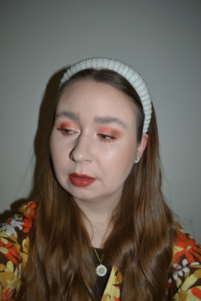 (Base: primer – e.l.f Cosmetics Power Grip primer, foundation – L’Oréal Paris True Match Nude plumping tinted serum (shade: 0,5-2 Very Light), concealers – Smashbox x Becca Under Eye Brightening Corrector in Fair/Light + Huda Beauty #FAUXFILTER Luminous Matte liquid concealer (shade: 1.3G Marshmellow), powders – Charlotte Tilbury Airbrush Brightening Flawless Finish powder (shade: Fair/Medium) + Laura Mercier Translucent Loose Setting Powder Ultra-Blur in Translucent, freckles – KimChi Chic Candy Girl Fake Freckles in Afternoon in The Flower Field. Face make-up: bronzer – Too Faced Milk Chocolate Soleil bronzer, blusher – Essence Disney The Lion King maxi blush in 01 Remember Who You Are, highlighter – Oden’s Eye Solmåne Moonlight Feel highlighter in H103 Warm Sunshine. Eye make-up: base – Sigma Beauty Eyeshadow Base Primer in Ignite, eyeshadows – Colourpop Smokin’ Hot palette (shades: Death Valley + Showstopper + Chai Latte + Sizzle + Fire Sign + Sahara) + Colourpop Super Shock shadow in Life Coach, mascara – Colourpop BFF mascara in Brownie Points, eyeliner – NYX Vivid Brights eyeliner in She Bang. Eyebrows: e.l.f. Cosmetics Brow Lift + Maybelline Brow Ultra Slim pencil in Medium Brown. Lips: MAC Chicory lip pencil + Colourpop Glowing Lip in Museum Date)