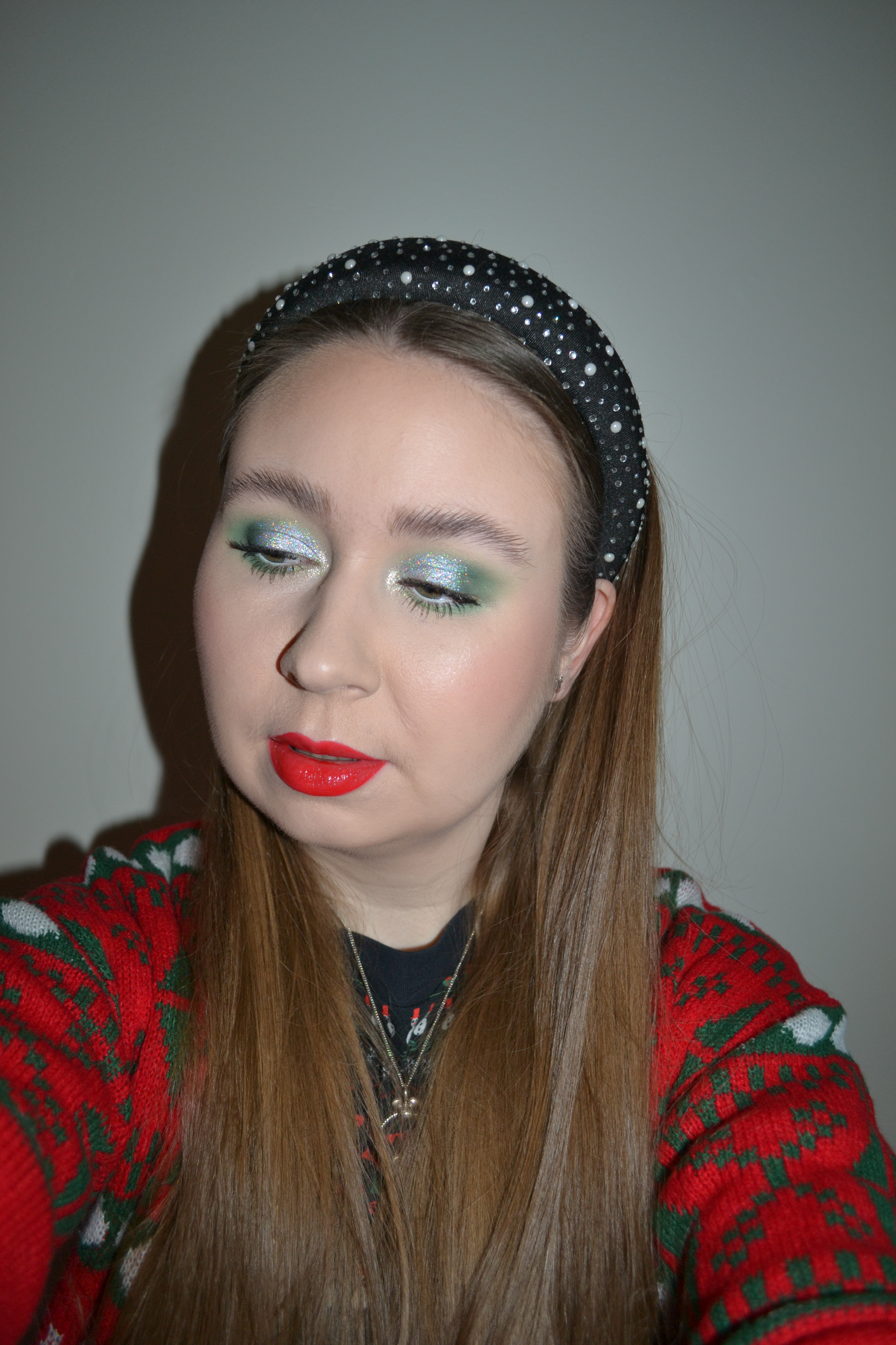 Here’s the make-up I wore with this outfit. It’s really difficult to capture the amazing holographic eyeshadow I’m wearing in a picture, but hopefully you get an idea of just how stunning it is!