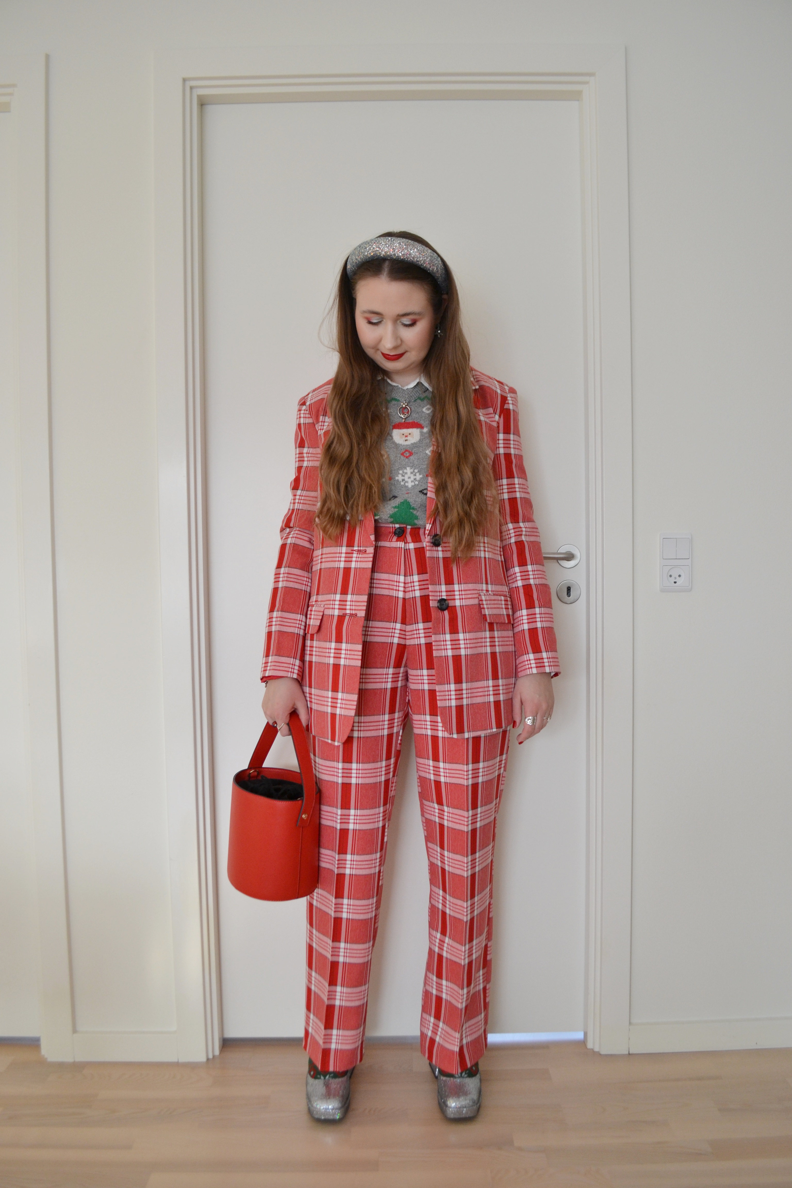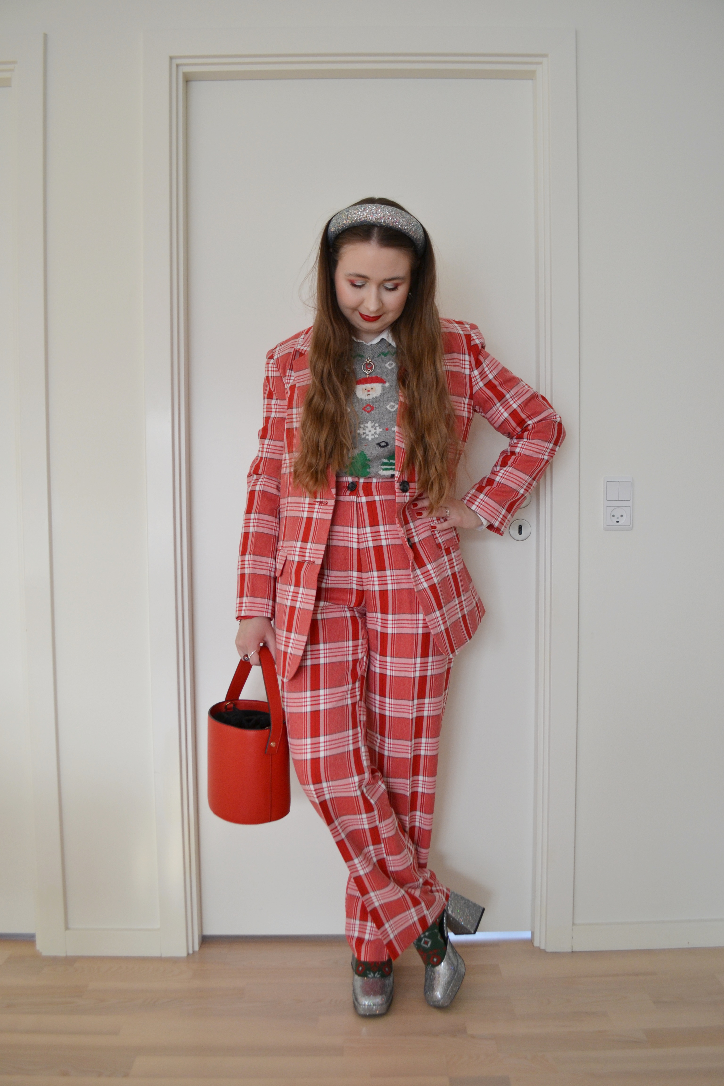 Here’s what I wore yesterday Saturday December 2. After being ill for a week, it was really nice to get to dress up for a family Christmas party, and this red checkered suit (which I haven’t hauled yet) was perfect for the occasion.