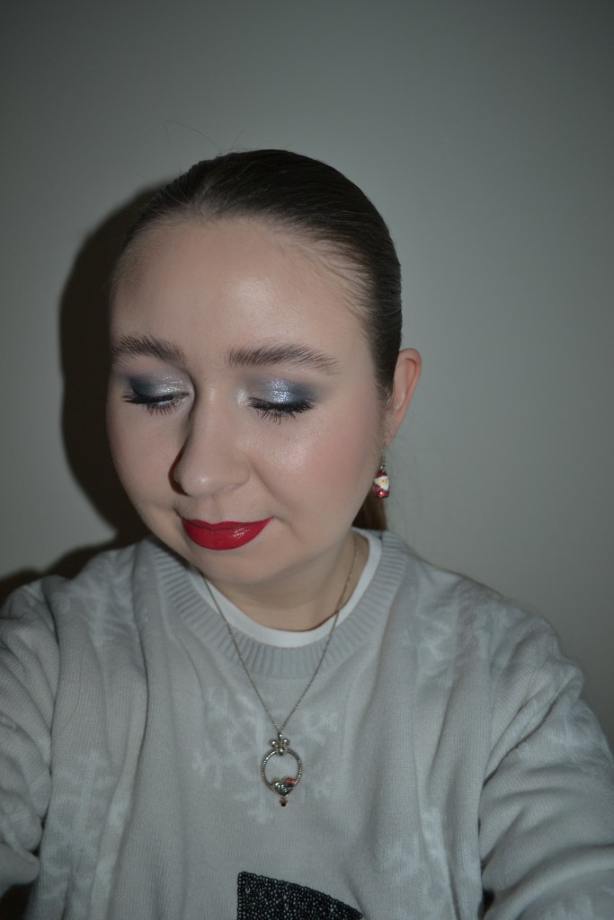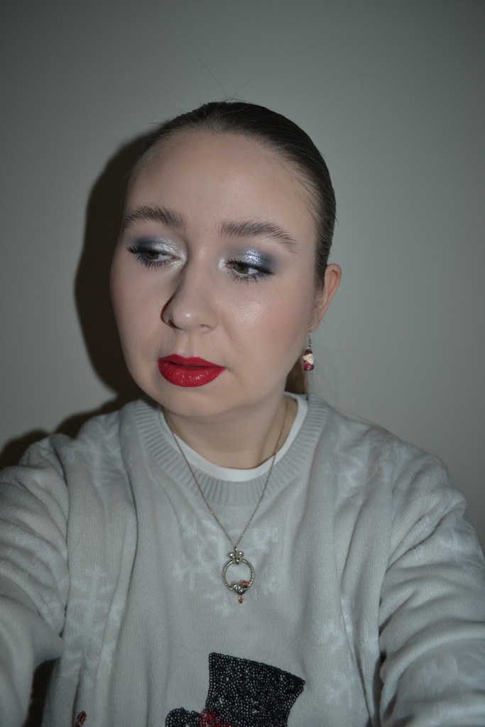 (Base: primer – e.l.f. Cosmetics Liquid Poreless Putty primer, foundations – Make Up For Ever HD Skin Undetectable stay-true foundation (shade: 1N00), concealer – Natasha Denona Hy-Glam concealer (shade: RN1 + N2), powders – Charlotte Tilbury Airbrush Brightening Flawless Finish powder (shade: Fair/Medium) + MAC Studio Fix Pro Set + Blur Weightless loose powder (shade: Light). Face make-up: bronzer – Milk Makeup Sculpt Stick in Toasted, blusher – Catrice Beautiful.You. Cream-To-Powder blush in C02 Treat Yourself, highlighter – Fenty Beauty Diamond Bomb All-Over Diamond Veil in How Many Carats?!. Eye make-up: base – MAC Pro Longwear Paint Pot in Painterly, eyeshadows – Natasha Denona Xenon palette (shades: Contrail + Blizzard + Snirt + Cygnus + Superionic + Stellar + Sposh + Rime), mascara – Catrice Glam & Doll False Lashes mascara, eyeliners – Sephora Care eye pencil in 01 Fresh Licorice + Colourpop High School Musical Crème gel liner in Exit. Eyebrows: Anastasia Beverly Hills Brow Freeze + Maybelline Brow Ultra Slim pencil in Medium Brown. Lips: Natasha Denona I Need A Rouge lip crayon in Emilia + Catrice Wild Escape high shine lipstick pen in C03 Unknown Desert)