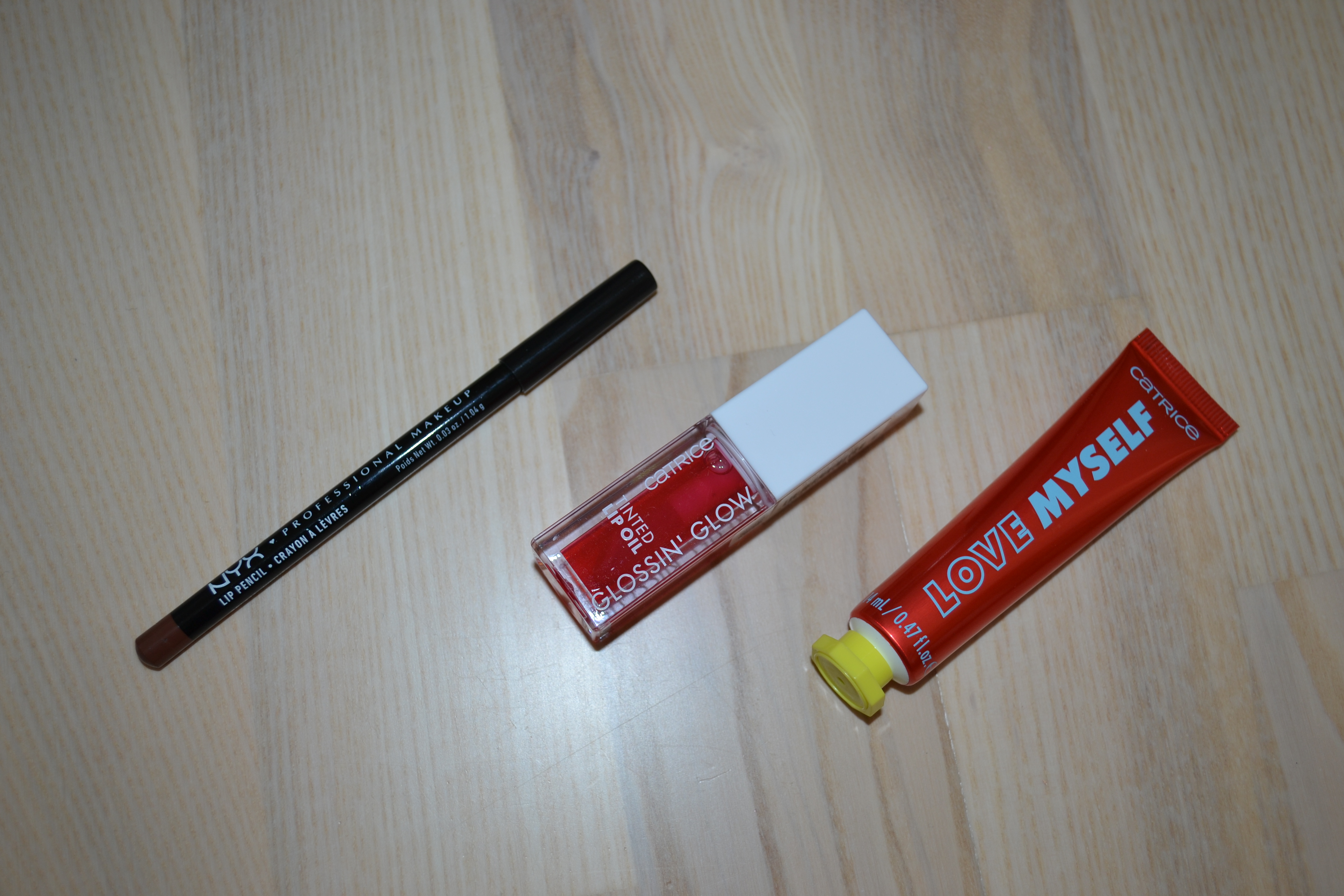 Moving on to lips. I picked up another NYX Slim lip pencil. This one is in the shade Nutmeg, and it’s a really nice brown. From Catrice I got the Glossin’ Glow tinted lip oil in 020 Drama Mama and the WHO I AM coloured lip balm in C02 Love Myself.