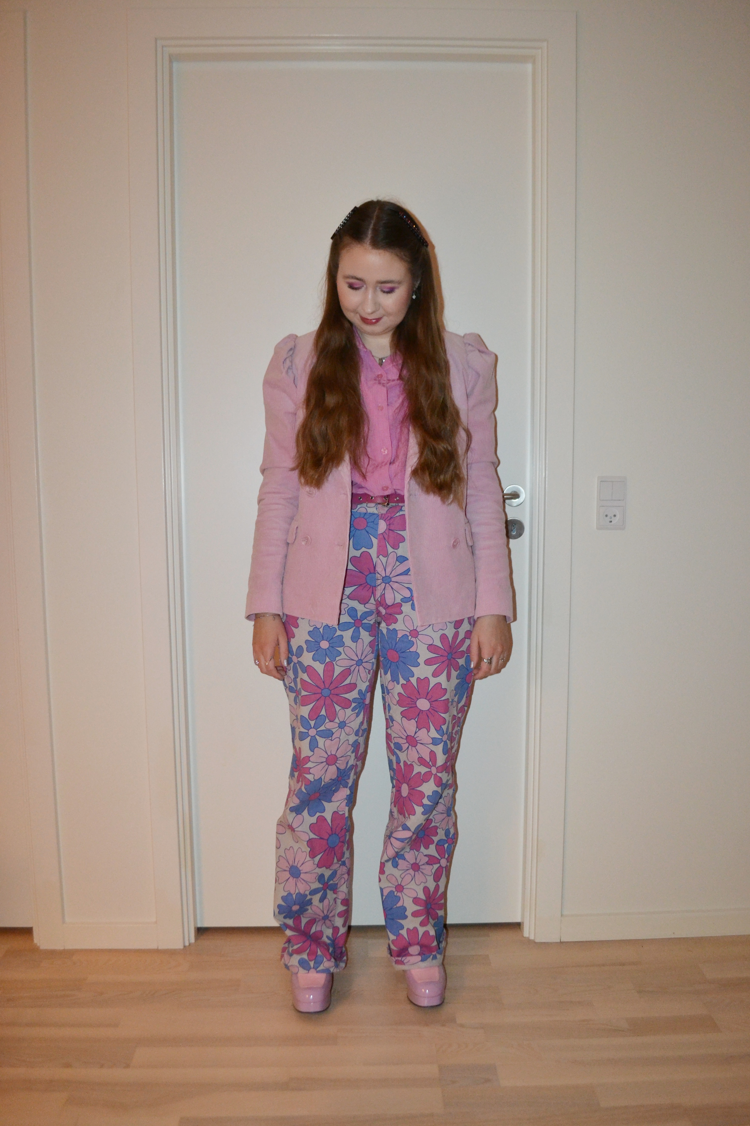Dusty and pastel shades Posted on February 8, 2024 by Mucha-Lucha Here’s what I wore Thursday October 26. I love the colour scheme of this look. The dusty and pastel shades of pink and purple are so pretty. (Blazer – Monki, shirt + belt – second hand, jeans – Bailey Rose, loafers – Jeffrey Campbell) Share this: Click to share on X (Opens in new window) X Click to share on Facebook (Opens in new window) Facebook Like Loading... Related