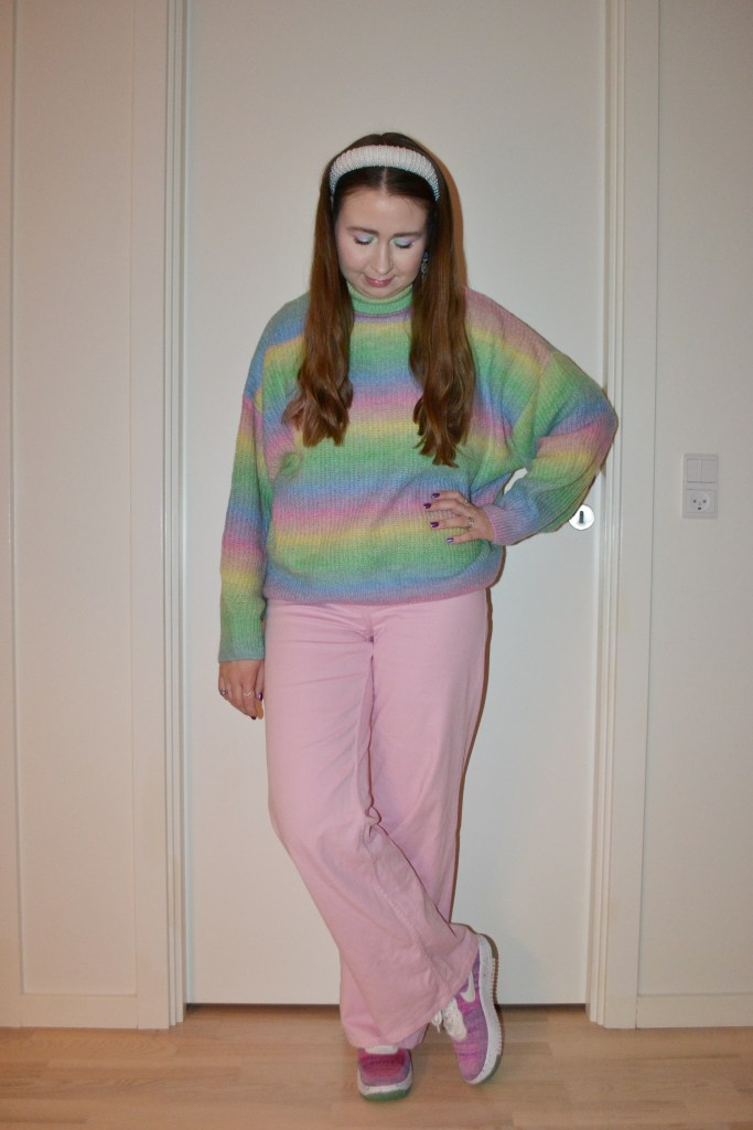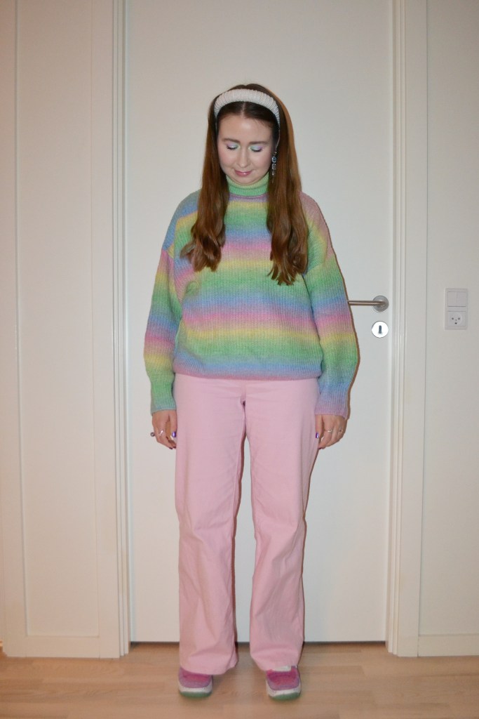 Here’s what I wore Thursday January 4. These are the first outfit (and make-up) pictures I took in the new year. I think I needed to wear something very different from my Christmassy looks, so I went with pastels.