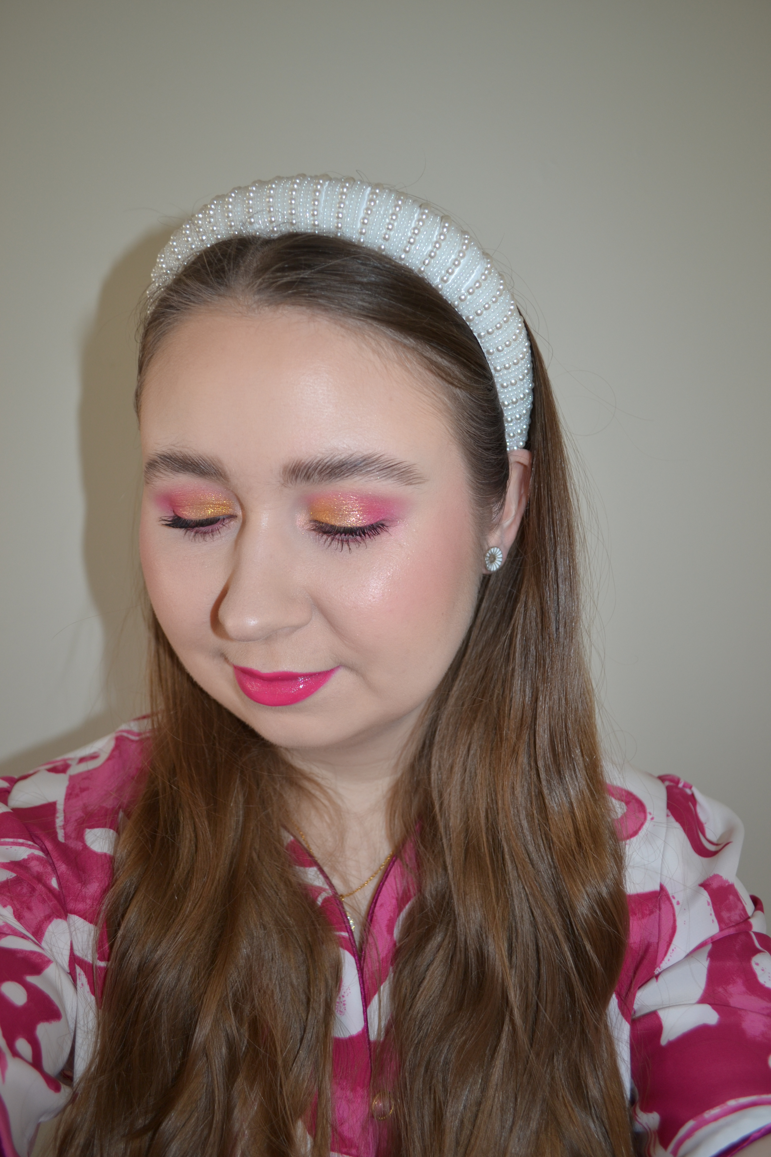 Here’s the make-up I wore with this outfit. I don’t remember ever doing a pink and gold eye look, but it was perfect with the outfit, and it gave me an opportunity to use my Pat McGrath Labs Mothership VIII Divine Rose II artistry palette again.