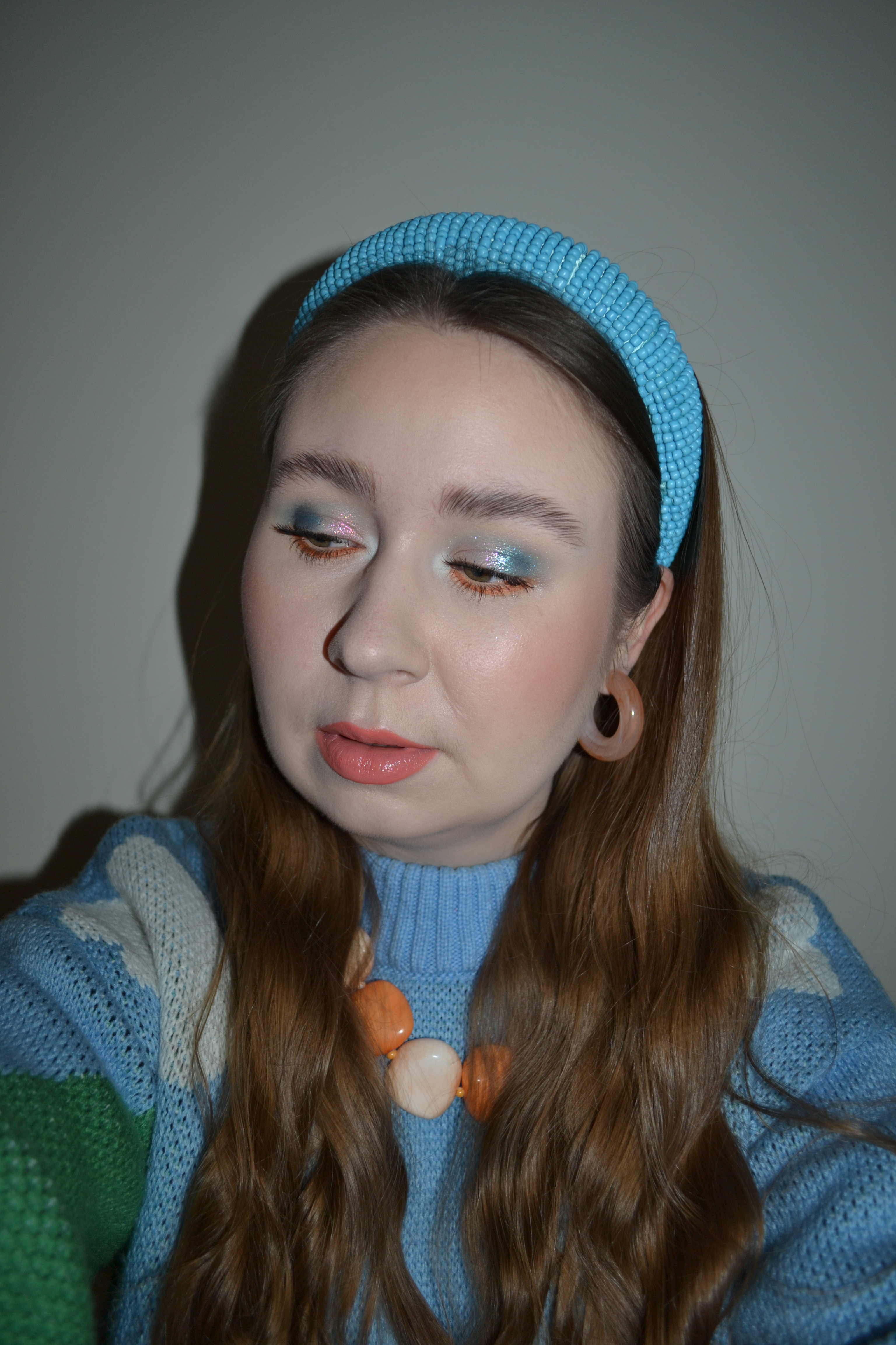 Here’s the make-up I wore with this outfit. I don’t often wear a peach lip, because it’s not my favourite. It doesn’t look horrible, but I don’t think it suits me that well.