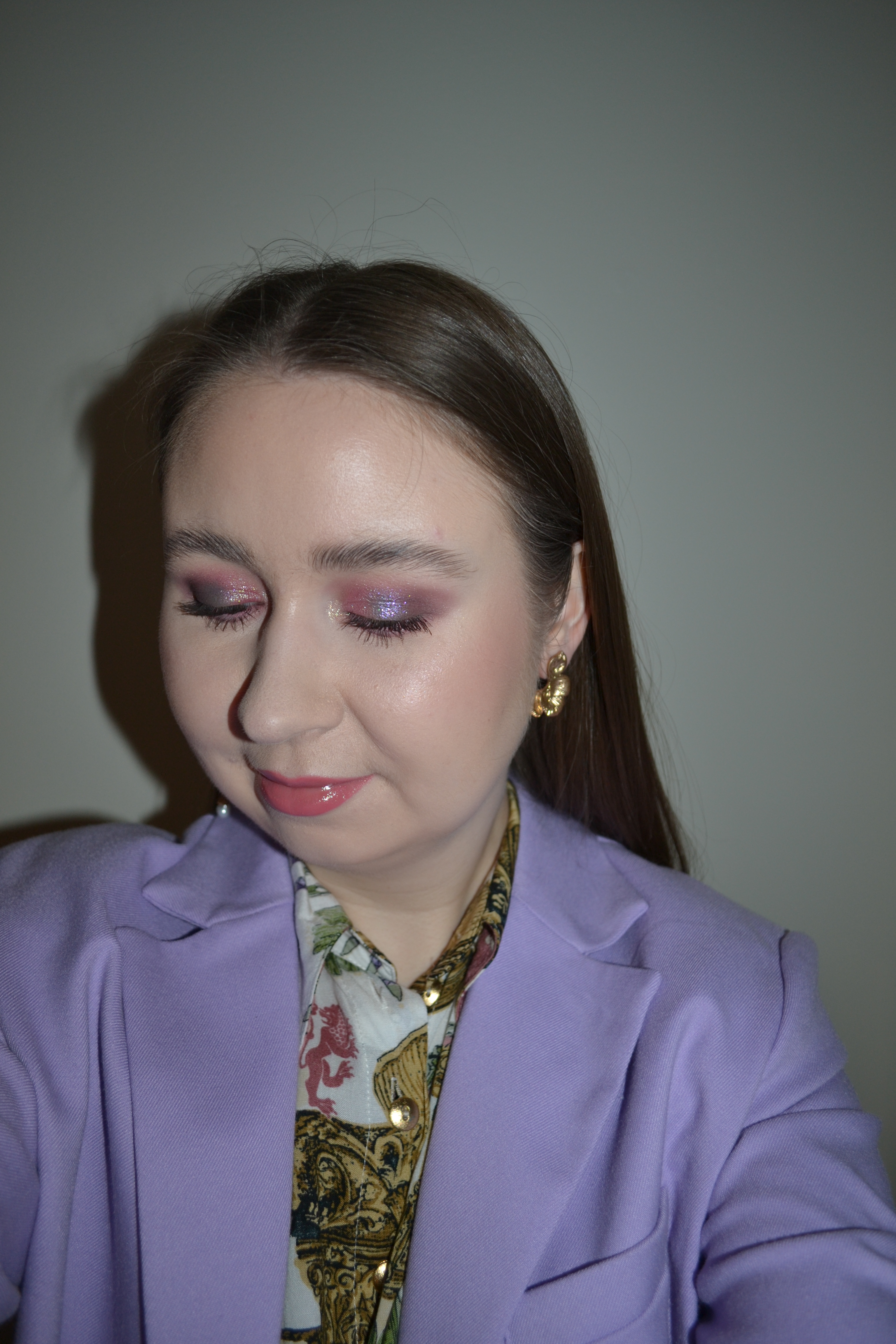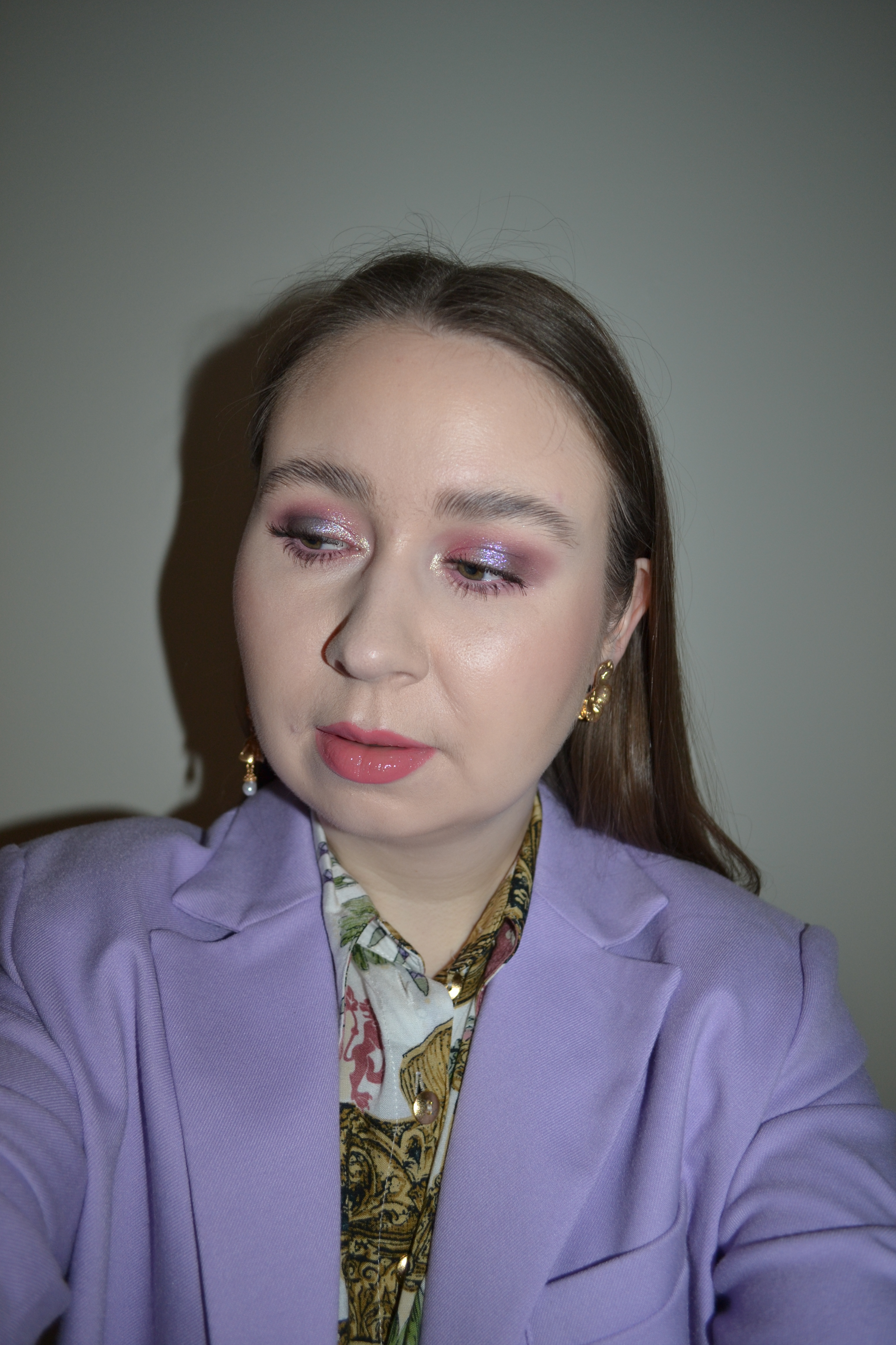 Here’s the make-up I wore with this outfit. I used the Whats Up Beauty Dragon Eye palette to create this beautiful, muted purple and pink eye look.