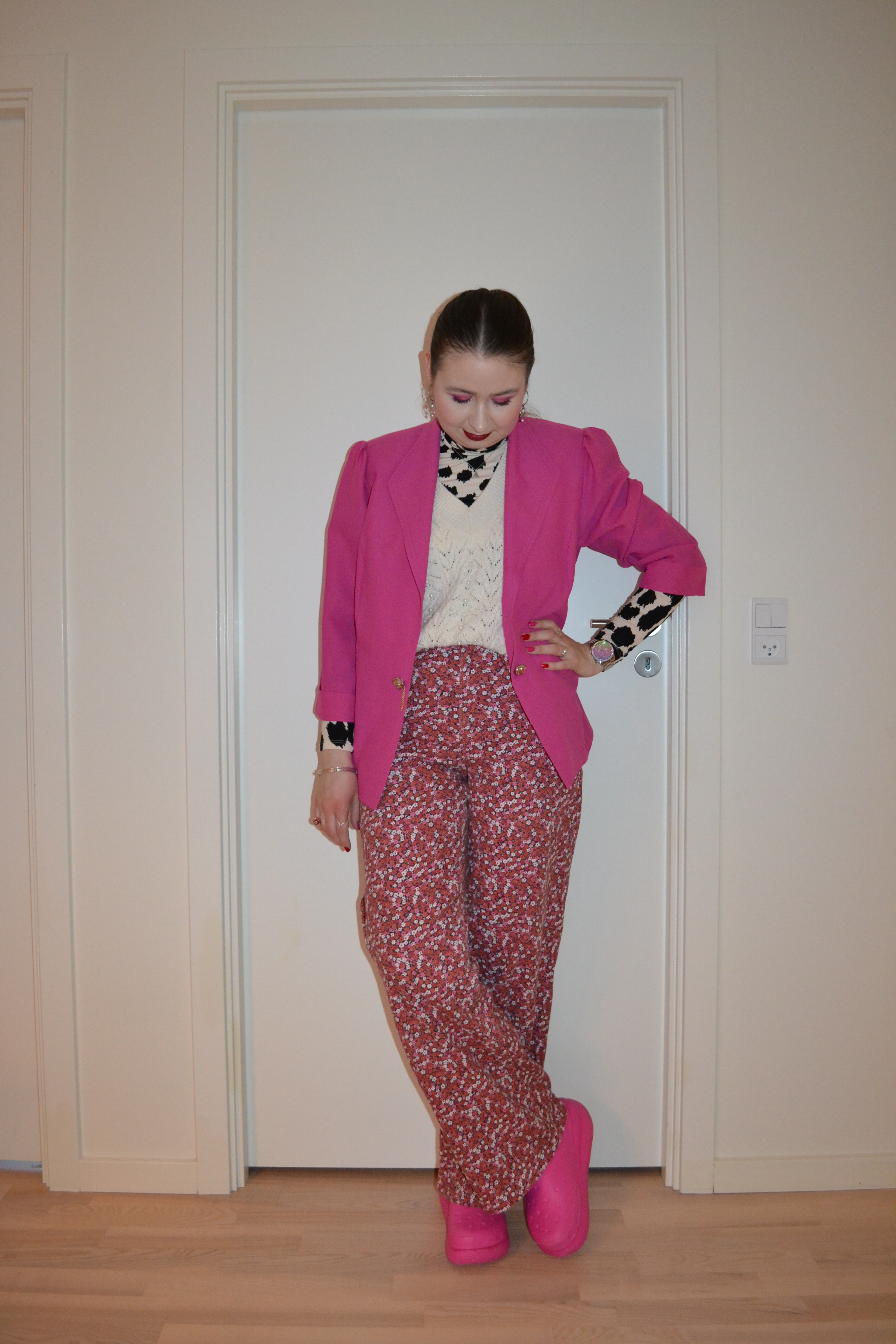 (Blazer – second hand, sweater vest – Zara, roll neck top + jeans – H&M, boots – Crocs)