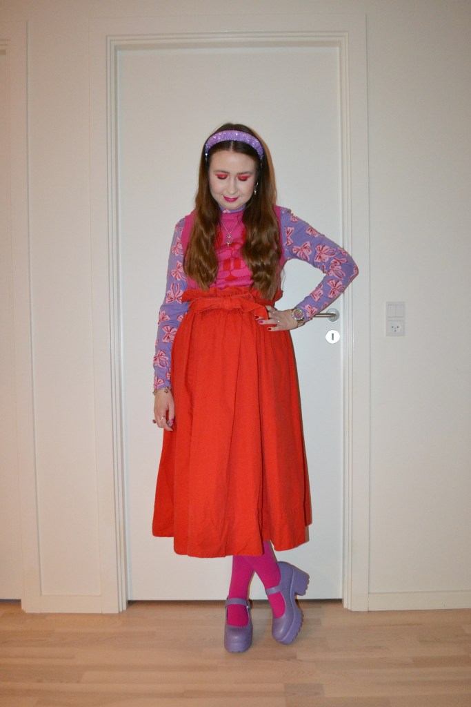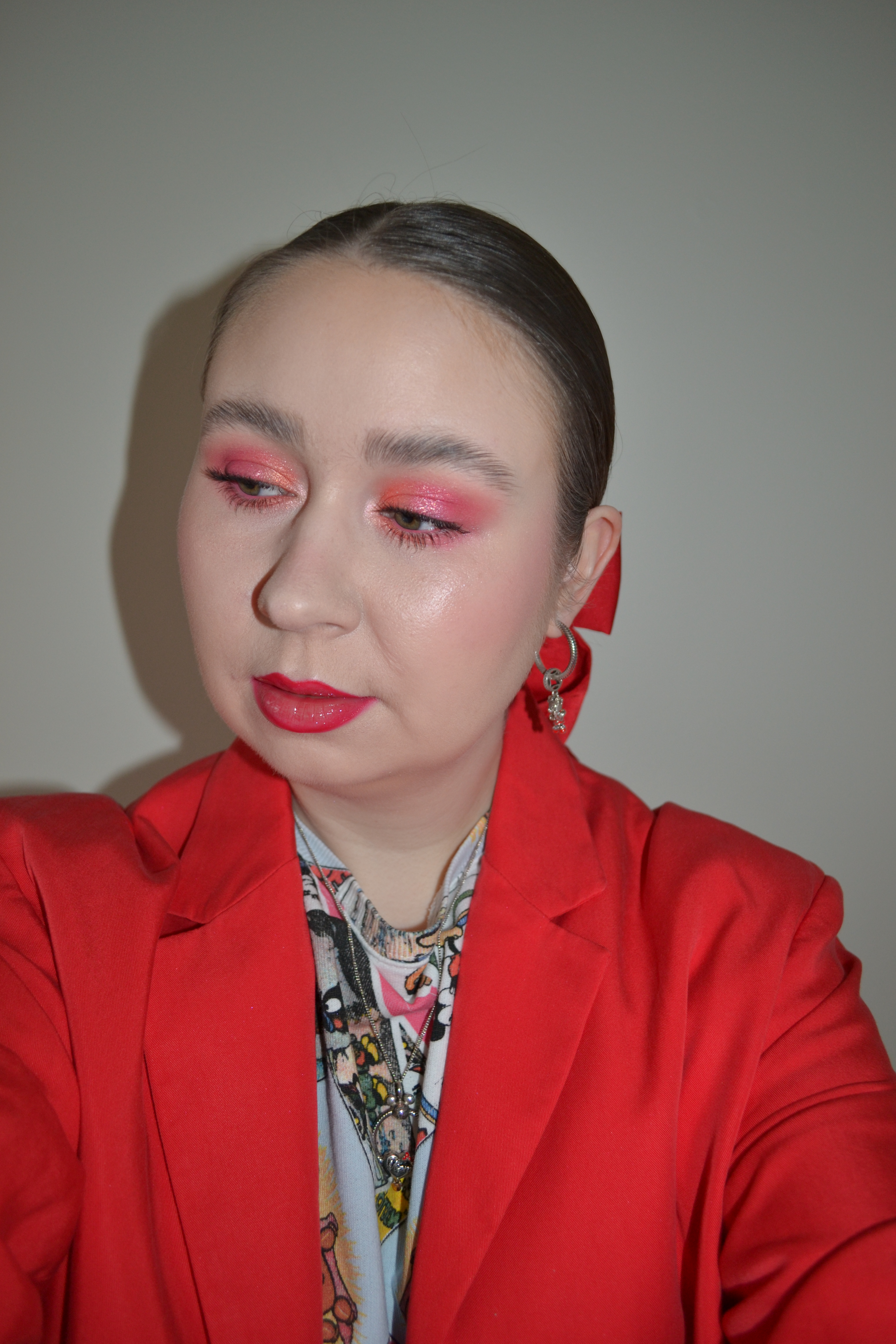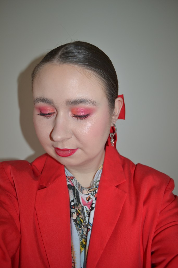 (Base: primer – Catrice Skin Glaze hydrating serum primer, foundation – Catrice Nude Drop Tinted Serum foundation (shade: 004N), concealer – NYX Pro Fix Stick correcting concealers (shades: 0.2 Pink + 03 Alabaster), powders – Laura Mercier Translucent Loose Setting Powder Tone Up in Rose + Catrice All Matt Shine Control powder Healthy Look in 100 Neutral Fresh Beige. Face make-up: bronzer + blusher + highlighter – Bobbi Brown Luxe Cheek & Highlight palette in Rose Glow (Brilliant Bronze (bronzer) + Aura (blusher) + Afternoon Glow (highlighter)). Eye make-up: base – MAC Pro Longwear Paint Pot in Painterly, eyeshadows – Essence eyeshadow in 20 Cream + Colourpop Wine & Only palette (shades: Major Chianti + Mull It Over + Cast A Chateau) + Colourpop Jelly Much shadows in All Love + 4ever Valentine, mascaras – Essence I Love Extreme crazy volume mascara + Maybelline Lash Sensational Sky High mascara (shade: Pink Air), eyeliners – Marc Jacobs Fineliner Ultra-Skinny Gel Eye Crayons (shades: Fine(wine) + (Pink)yswear). Eyebrows: Anastasia Beverly Hills Brow Freeze + Maybelline Brow Ultra Slim pencil in Medium Brown. Lips: Essence Stay 8h lipliner in 04 Naïve + Essence Love, Luck & Dragons creamy lipstick in 01 Energy Level: Dragon-like + Essence Disney The Lion King Swirl lipgloss in 02 Lion Sleeps Tonight)