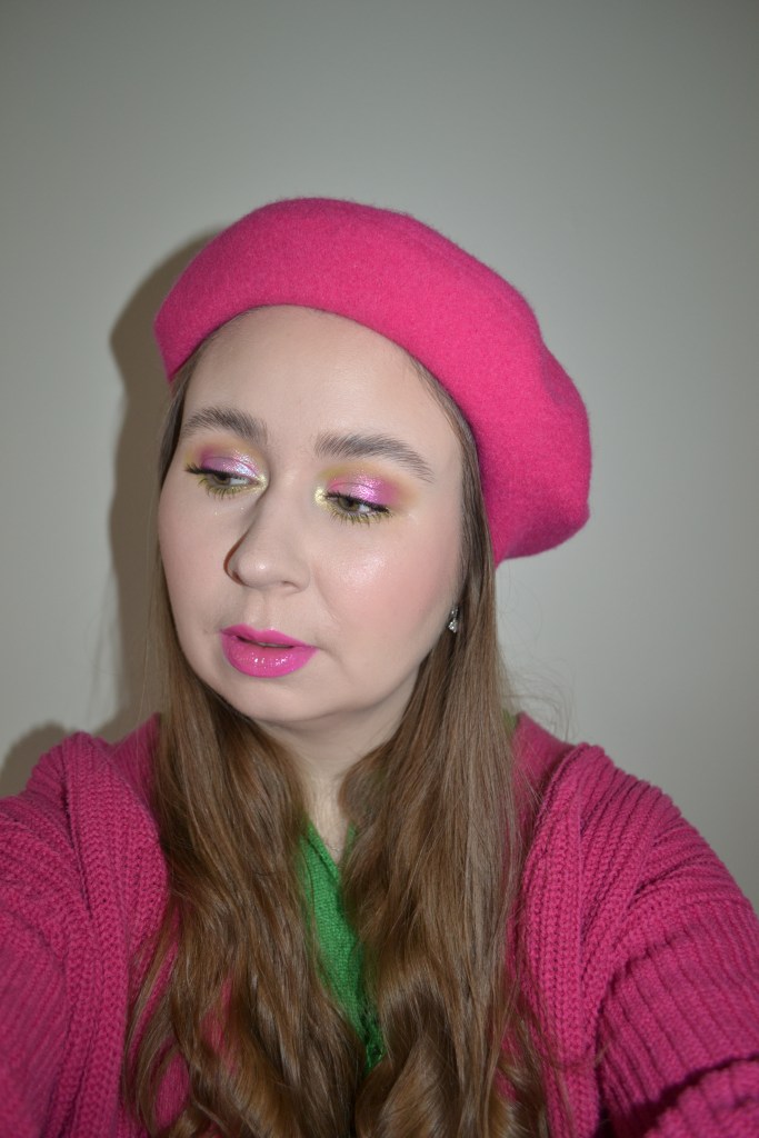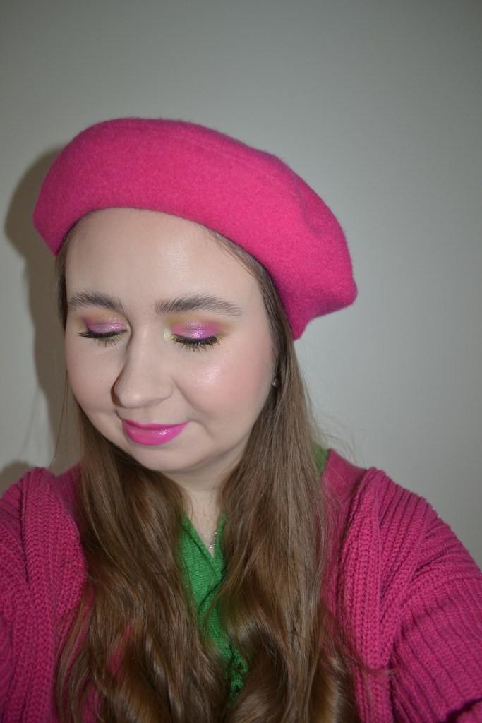 Here’s the make-up I wore with this outfit. The make-up look matches the outfit perfectly; it’s just as vibrant and fun.