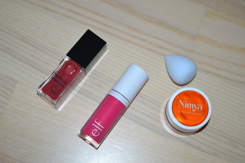 Here’s the rest of the products I purchased at the same time as the Danessa Myricks Beauty palette. I picked up the e.l.f. Cosmetics Glow Reviver lip oil in Rose Envy, the e.l.f. Cosmetics Camo liquid blush in Comin’ In Hot Pink, and the Nimya by NikkieTutorials Cheeky Flush cream blush in Hey Carl!. Both blushes are super pigmented.