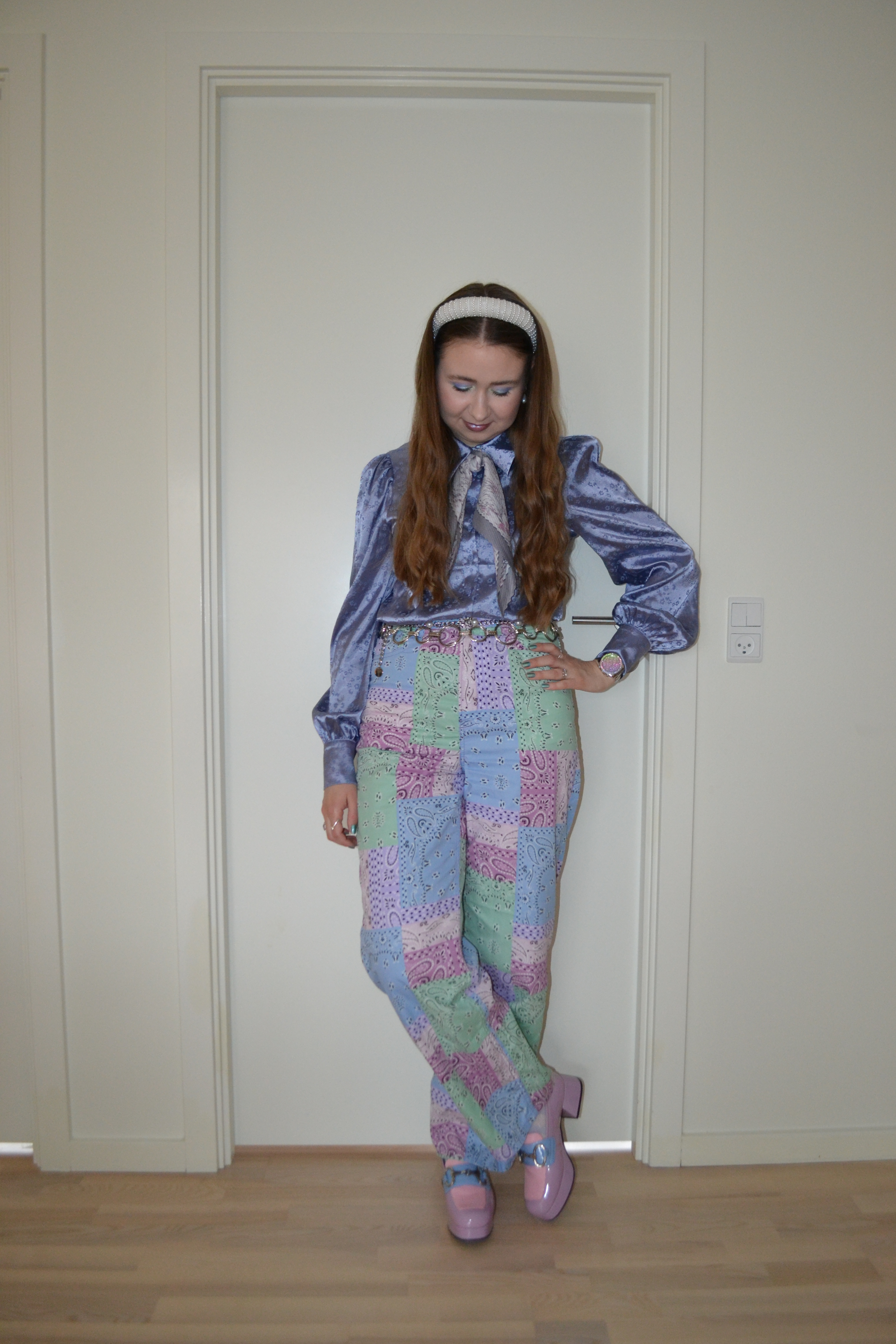 Little details Posted on June 17, 2024 by Mucha-Lucha Here’s what I wore Thursday April 11. I love the little details in this look from the scarf to the chain belts. (Scarf – second hand, shirt – Monki, trousers + pearl chain belt – H&M, circle chain belt – Asos Design, loafers – Jeffrey Campbell) Share this: Click to share on X (Opens in new window) X Click to share on Facebook (Opens in new window) Facebook Like Loading... Related