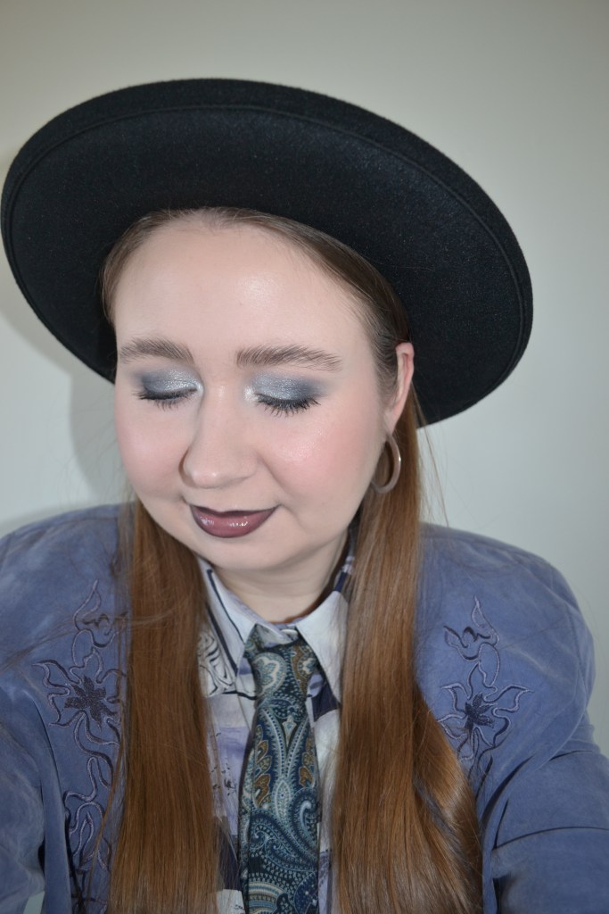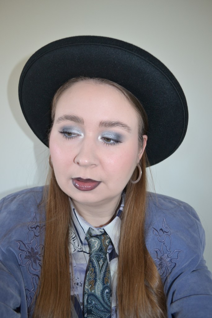 Here’s the make-up I wore with this outfit. I liked the idea of the sheer black lip, but I don’t know if I love it in action.