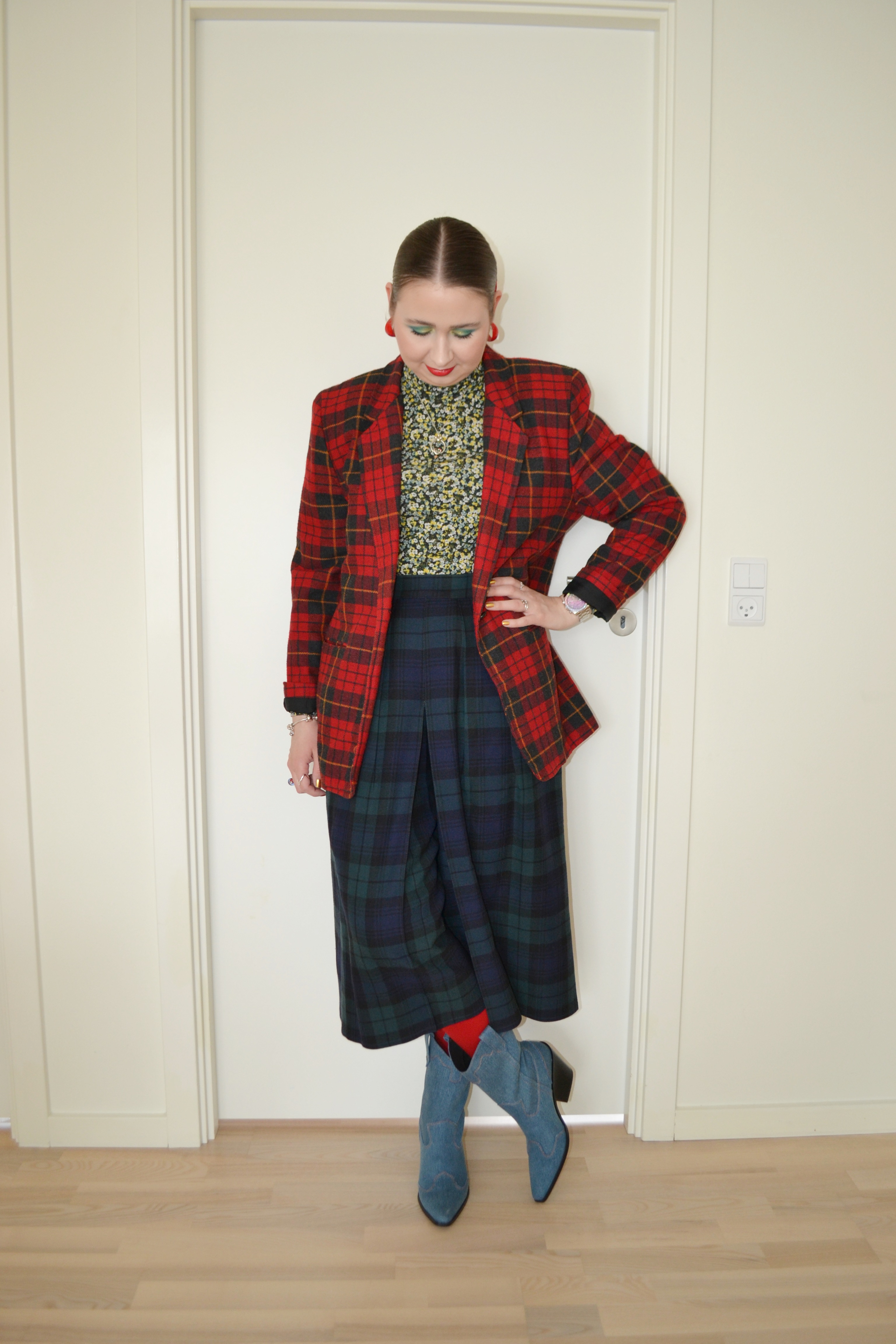 Skirt or trousers? Posted on July 3, 2024 by Mucha-Lucha Here’s what I wore Thursday April 18. This is the only “skirt” suit inspired look I did during the week, however, the “skirt” is actually trousers. (Blazer + skirt trousers – second hand, roll neck top – H&M, tights – Calzedonia, boots – PULL&BEAR) Share this: Click to share on X (Opens in new window) X Click to share on Facebook (Opens in new window) Facebook Like Loading... Related