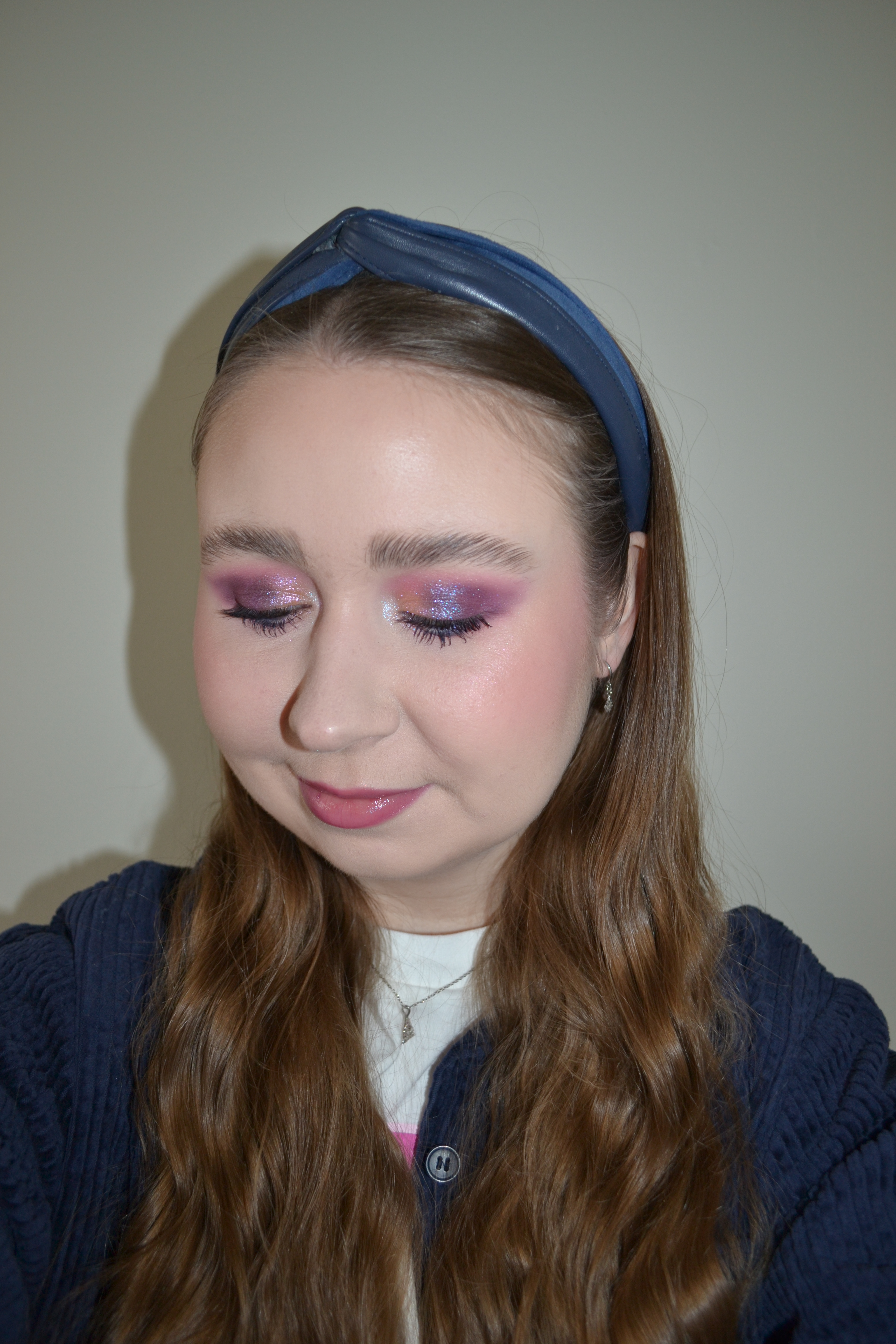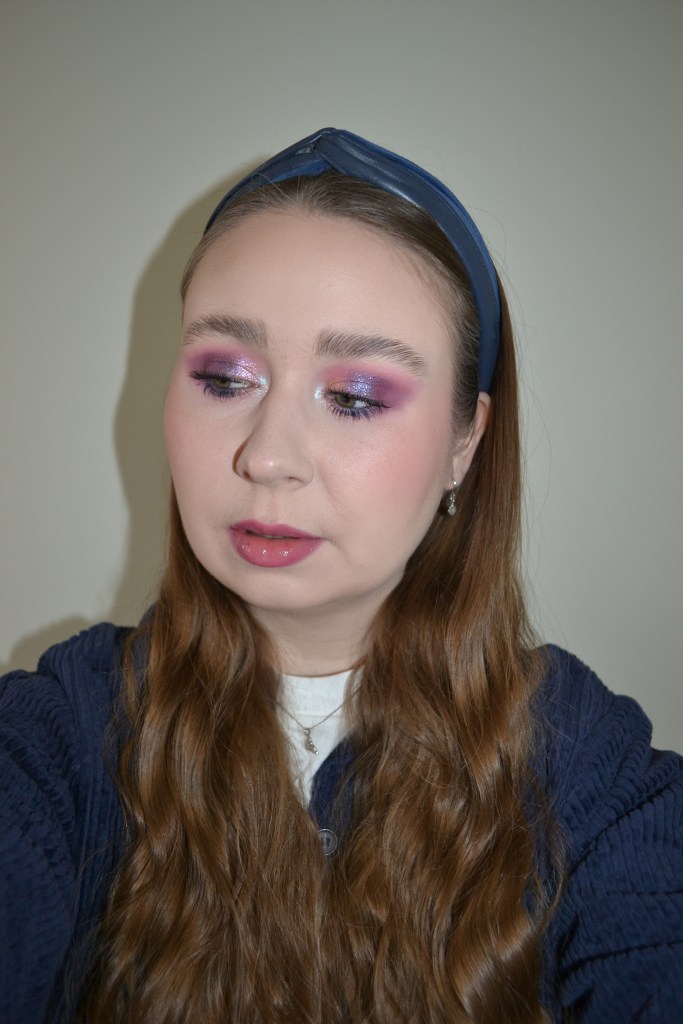(Base: primer – e.l.f. Cosmetics Liquid Poreless Putty primer, foundation – NYX Born To Glow naturally radiant foundation (shade: Porcelain), concealer – NYX Pro Fix Stick correcting concealers (shades: 0.2 Pink + 03 Alabaster), powders – Laura Mercier Translucent Loose Setting Powder Tone Up in Rose + Dior Backstage Face & Body Powder-No-Powder in 0 Neutral. Face make-up: bronzer – The Balm Take Home The Bronze bronzer in Oliver, blusher – Lethal Cosmetics Magnetic face powder in Pansy, highlighter – R.E.M. Beauty Interstellar highlighter in Honeymoon High. Eye make-up: base – MAC Pro Longwear Paint Pot in Painterly, eyeshadows – Essence eyeshadow in 20 Cream + Lethal Cosmetics Midnight Serenade palette (shades: Omen + Velvet + Ember + Enchantress + Dreamscape + Starlit), mascaras – Essence I Love Extreme crazy volume mascara + Kiko Milano Smart Colour mascara in 07 Navy Blue, eyeliner – MAC Cobalt Kohl eye kohl. Eyebrows: Anastasia Beverly Hills Brow Freeze + Maybelline Brow Ultra Slim pencil in Medium Brown. Lips: NYX Slim lip pencil in Prune + NYX Fat Oil Lip Drip in That’s Chic)