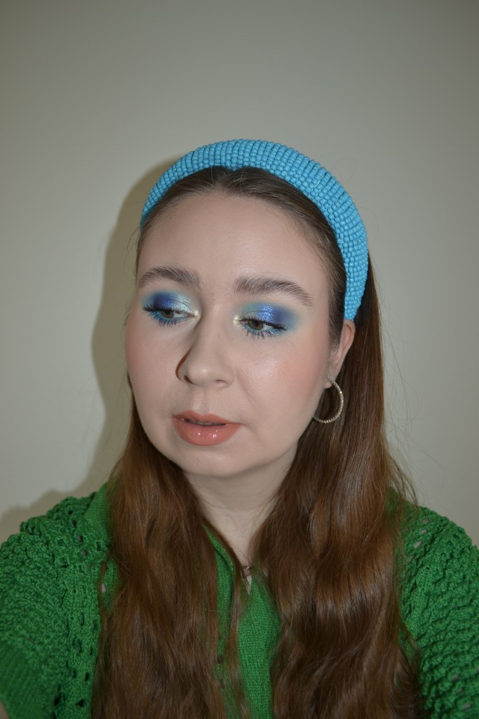 Here’s the make-up I wore with this outfit. You know I love a blue eye look, and the Cosmic Brushes Winter Wonderland palette is a blue eyeshadow lover’s dream.