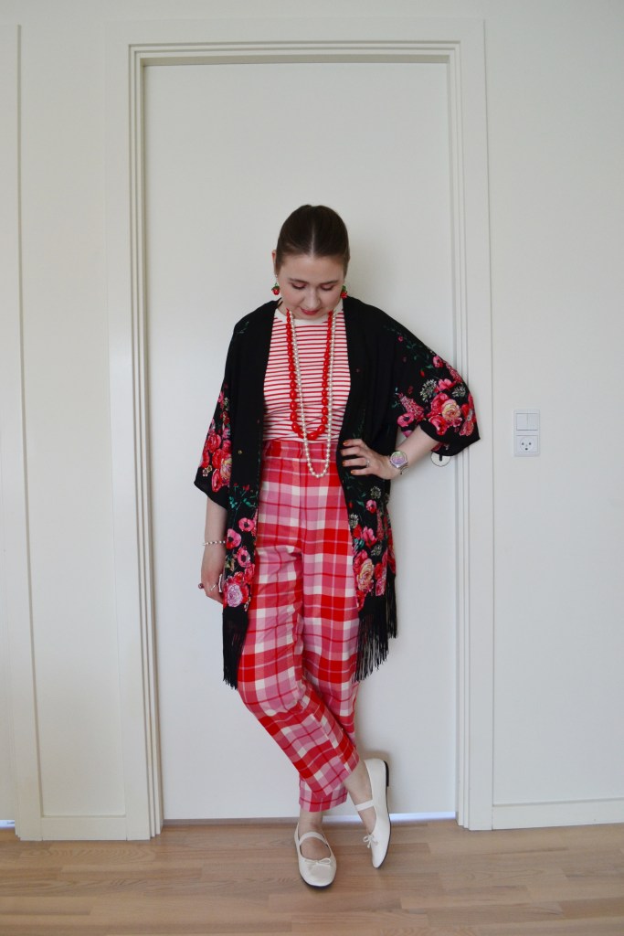 Here’s what I wore Wednesday May 1. I love how the mix of stripes, checks, and florals look so great together, because they’re all within the same colour scheme.