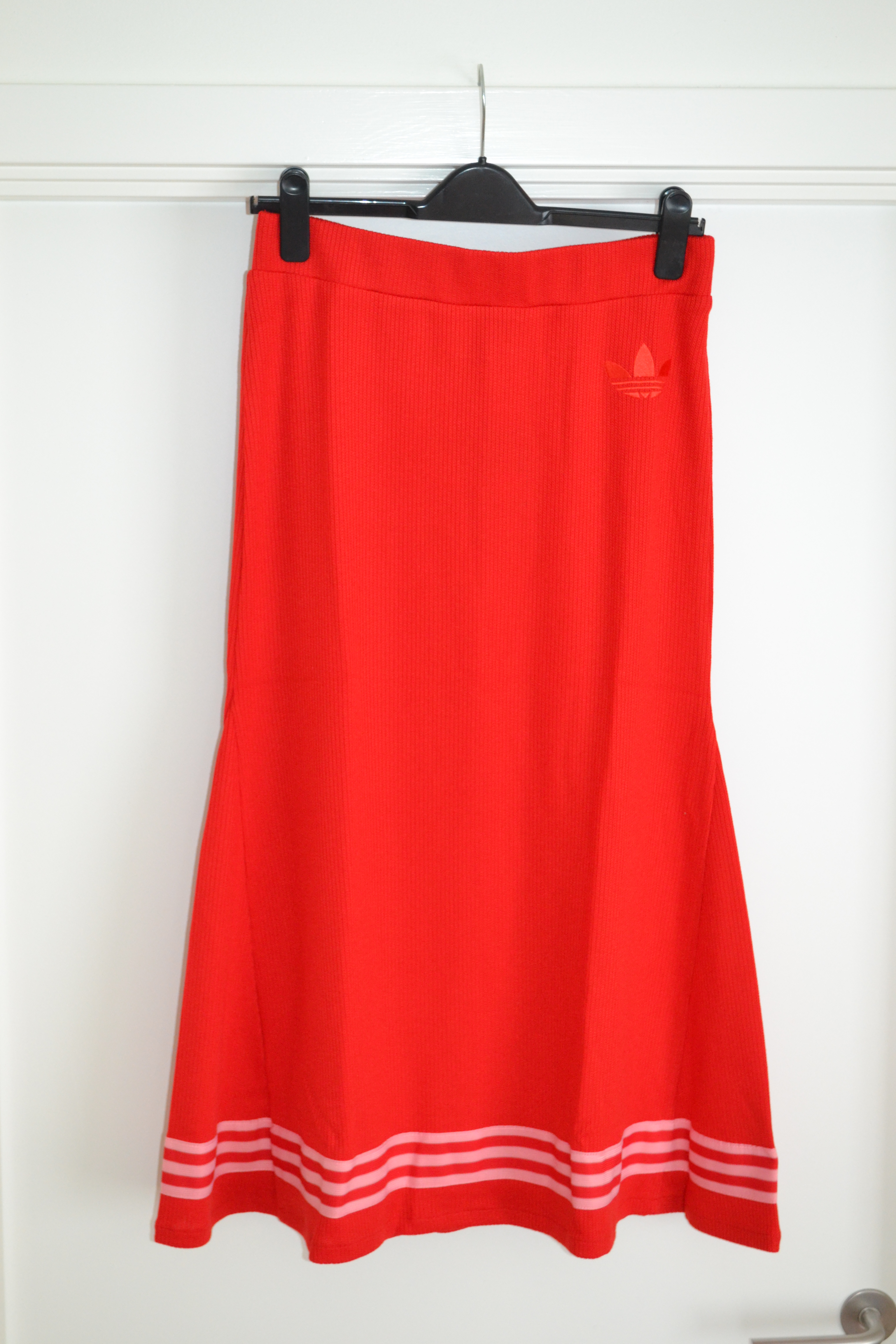I’m not a sporty person, but I have been interested in trying out a skirt from Adidas Originals, and this red midi skirt with the pink stripes is the perfect skirt for a non-sporty fashion lover like me.