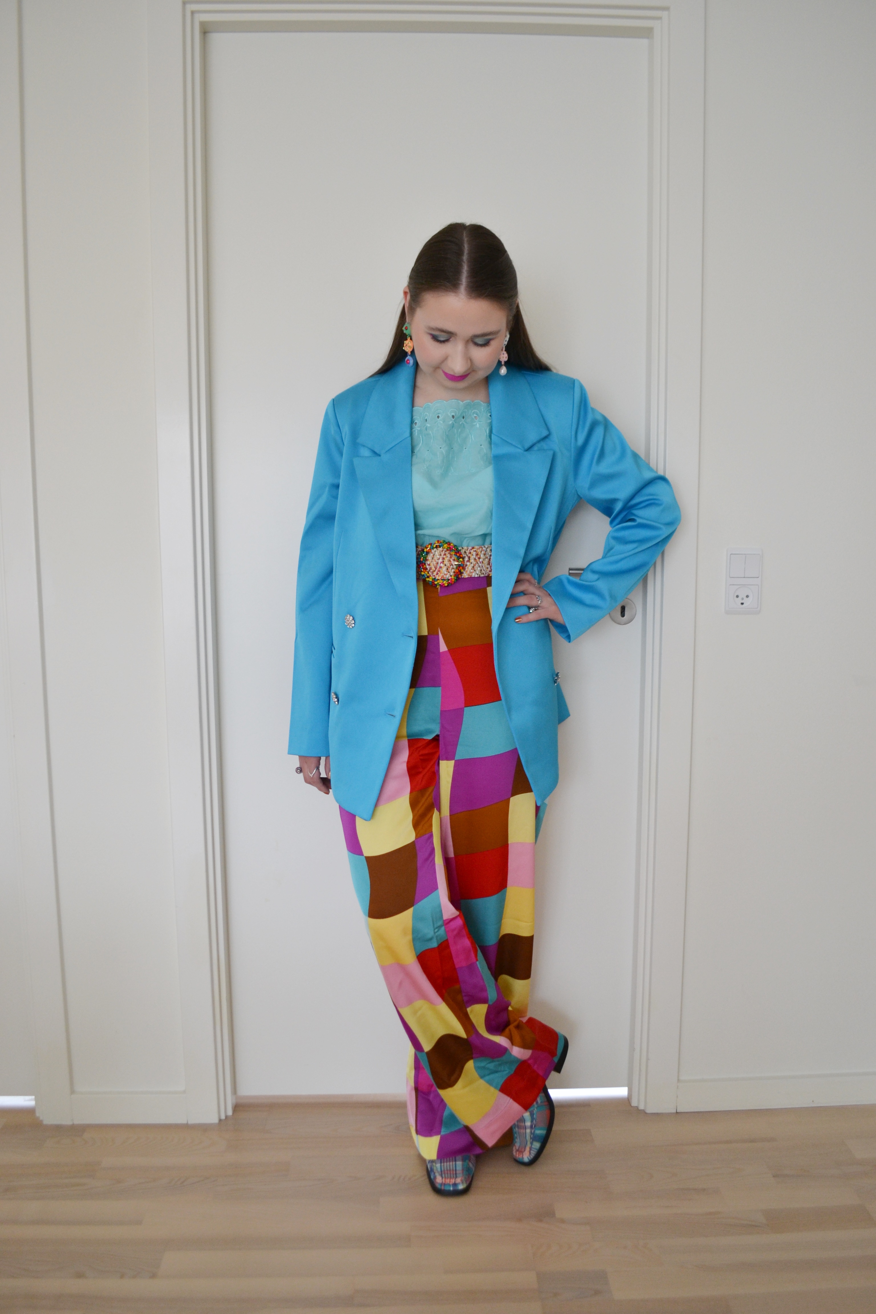 Bright and colourful and funky Posted on August 1, 2024 by Mucha-Lucha Here’s what I wore Wednesday May 8. I love this outfit! It’s so bright and colourful and funky, if I do say so myself. (Blazer – Crás, top – second hand, belt – My Accessories, trousers – Something New, loafers – Asos Design) Share this: Click to share on X (Opens in new window) X Click to share on Facebook (Opens in new window) Facebook Like Loading... Related