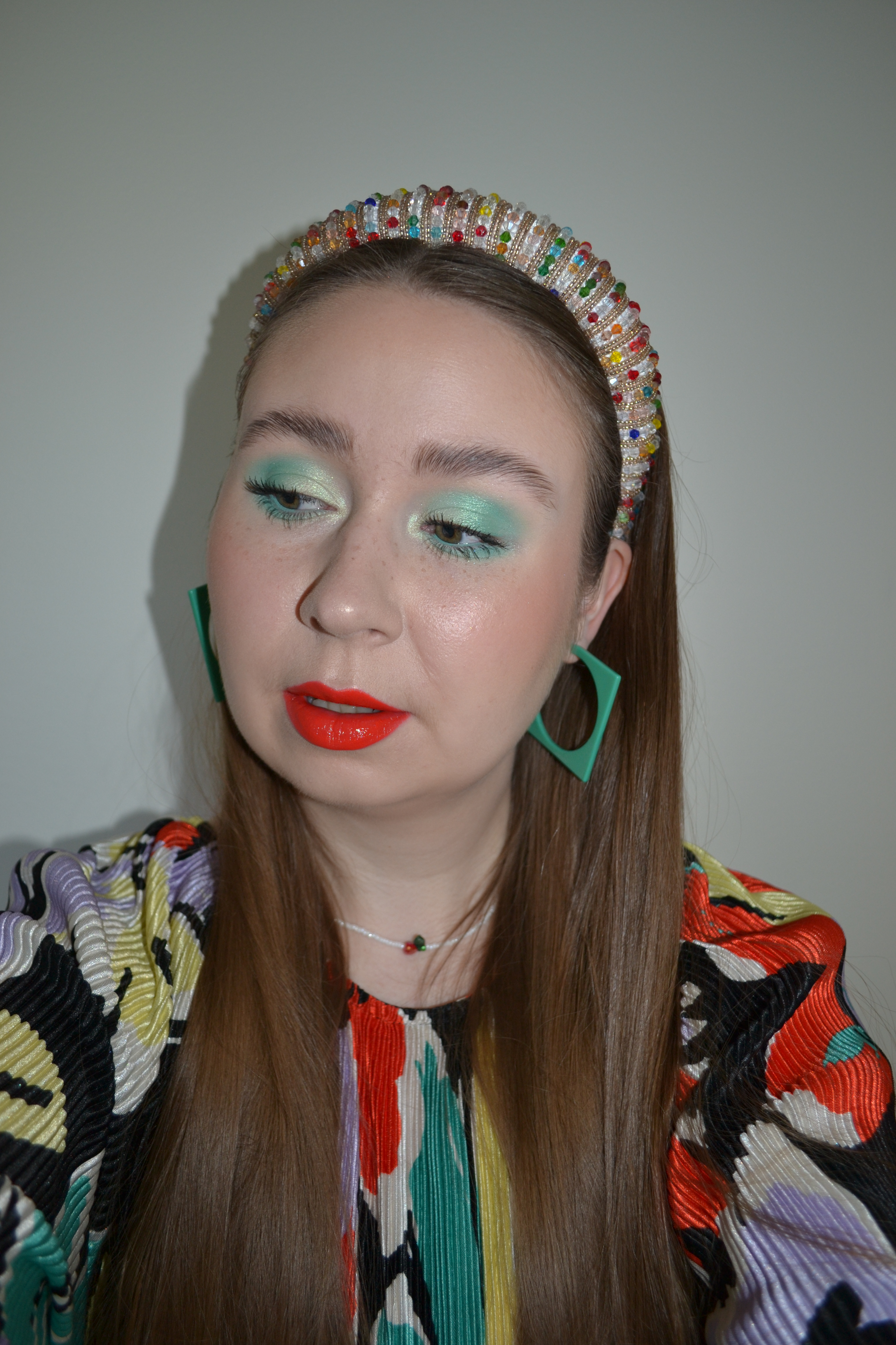 Here’s the make-up I wore with this outfit. Who says you can’t wear bright, colourful eye make-up with a bright, colourful lip… not me.