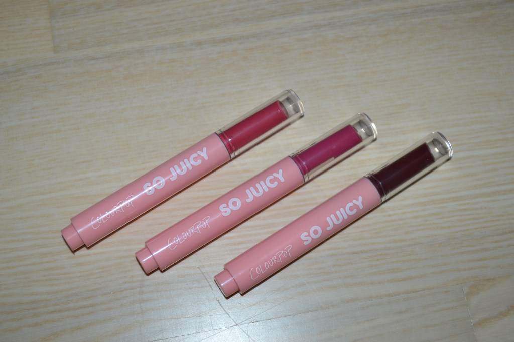 Lastly, I wanted to try the So Juicy plumping gloss balms and picked up the She’s So Juicy set, which includes the shades (from left to right) Guava Glaze, Dolled Up, and Berry Spritz. So far I like these.