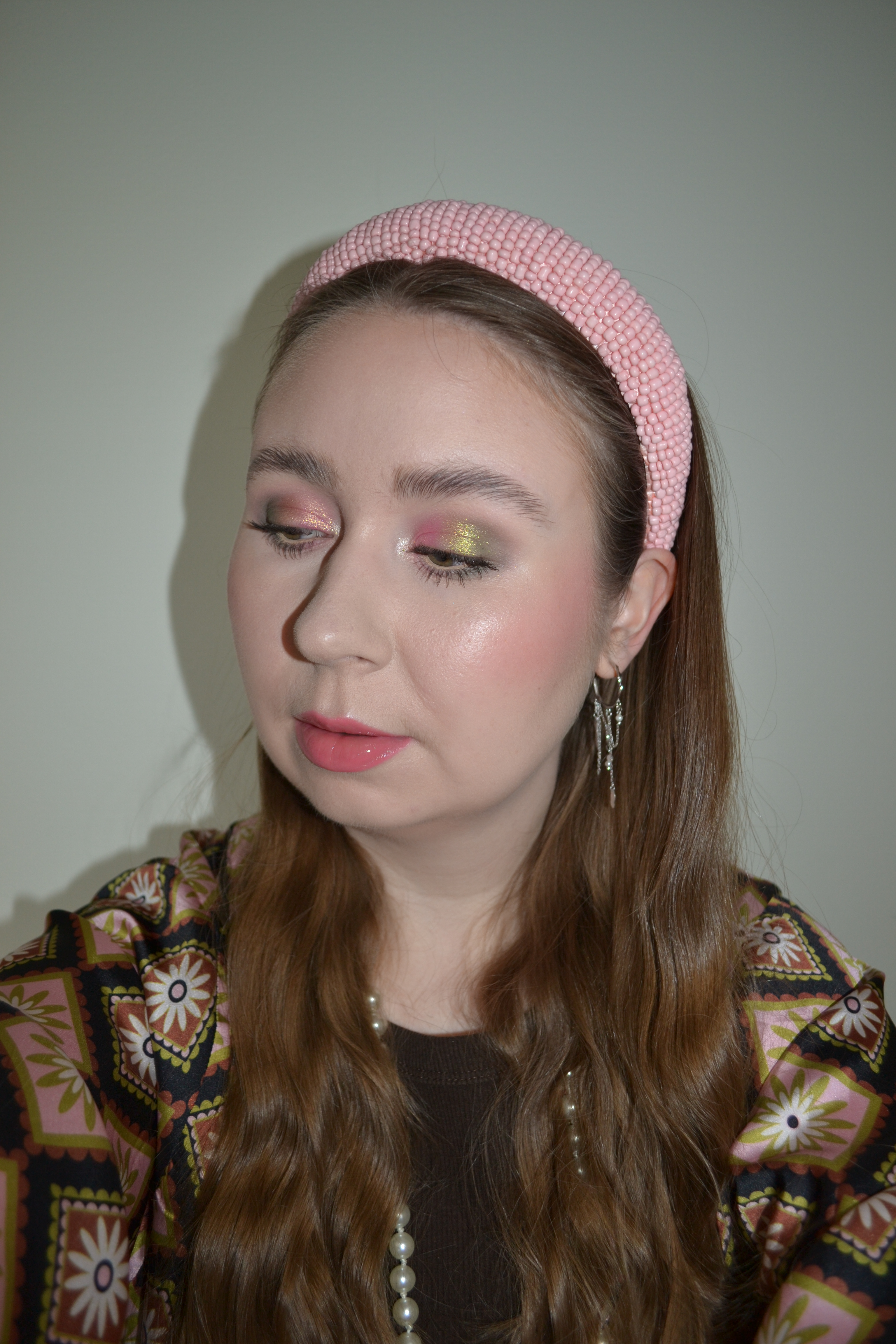 Here’s the make-up I wore with this outfit. The eyeshadow looks quite pretty in these pictures, but I recall that they didn’t last very long on my eyelids, which was a shame.