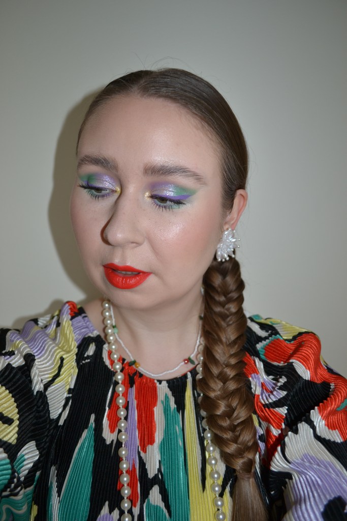Here’s the make-up I wore with this outfit. I used the Colourpop Pokémon Pallet Town palette to create the eye look, and I think it turned out fun.