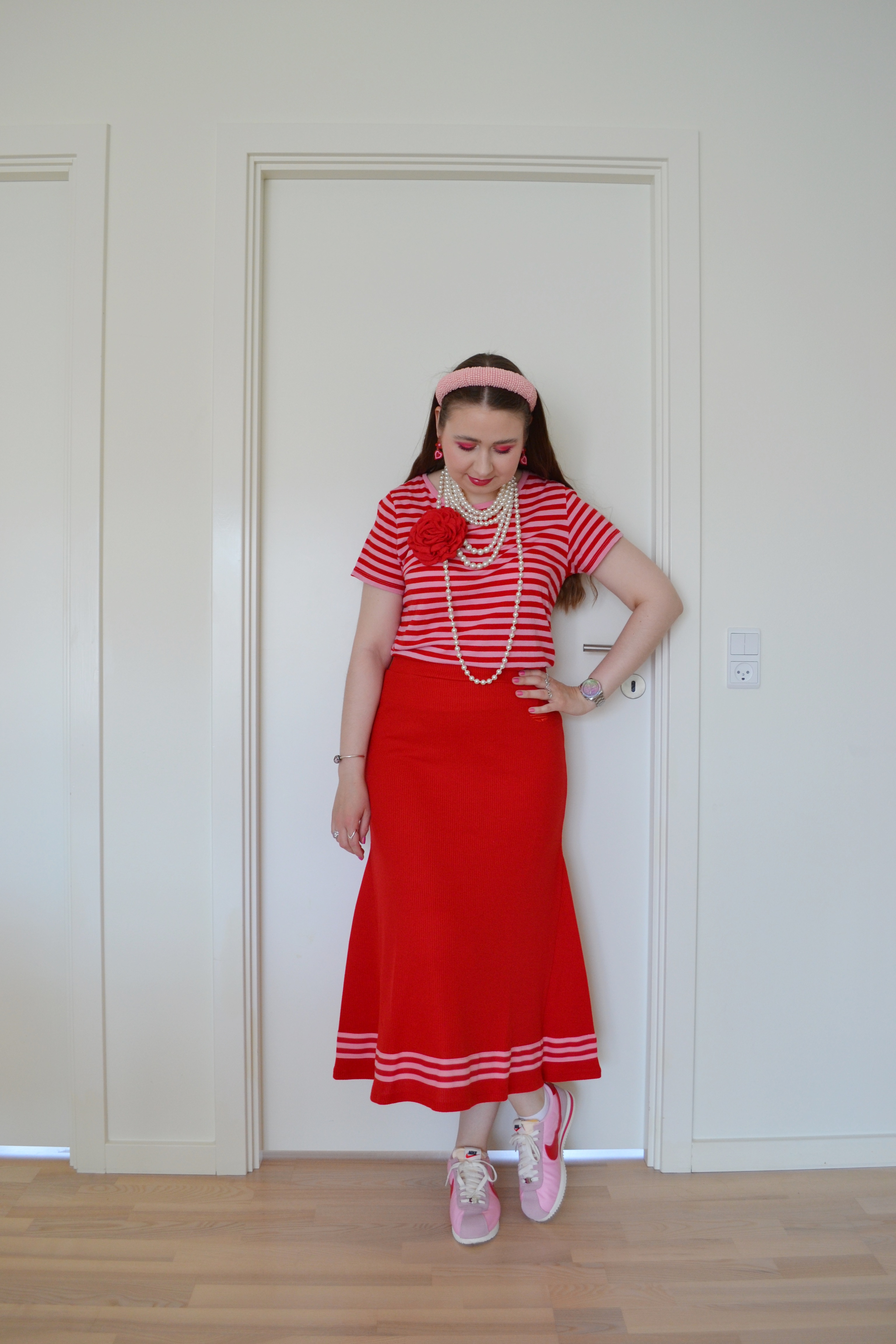 (T-shirt – Monki, skirt – Adidas Originals, sneakers – Nike)
