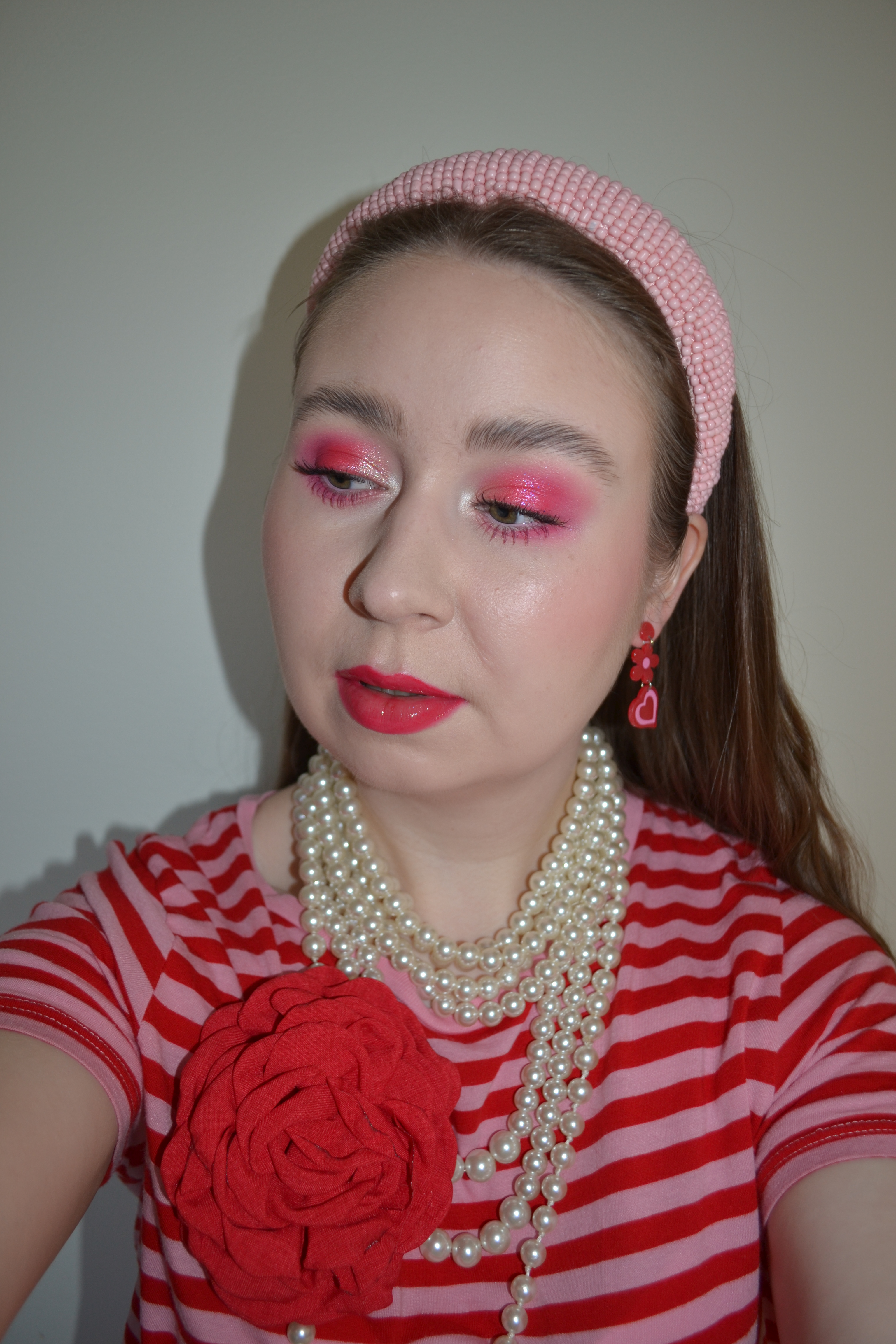 Here’s the make-up I wore with this outfit. All of this red and pink makes me so happy:)