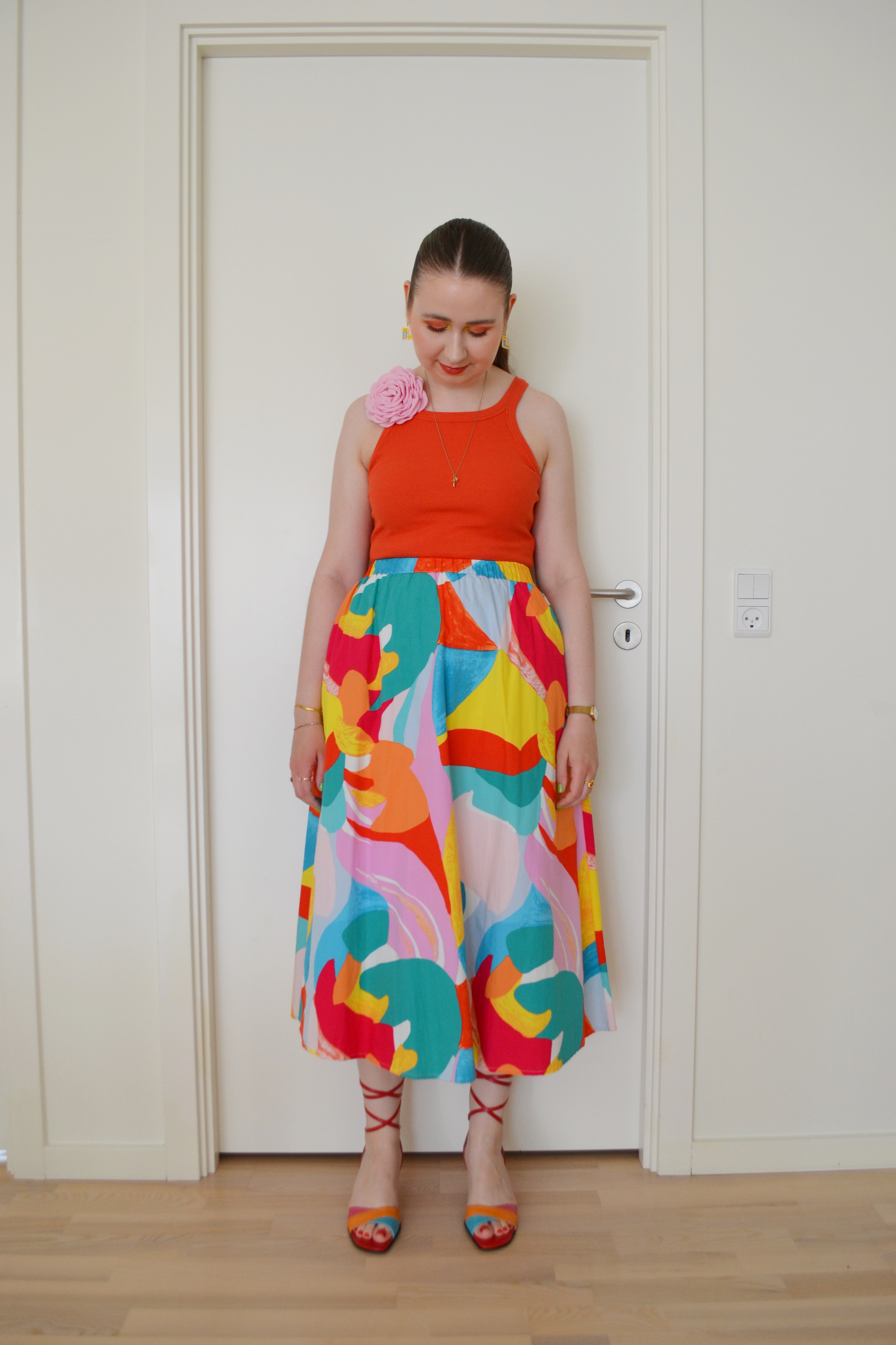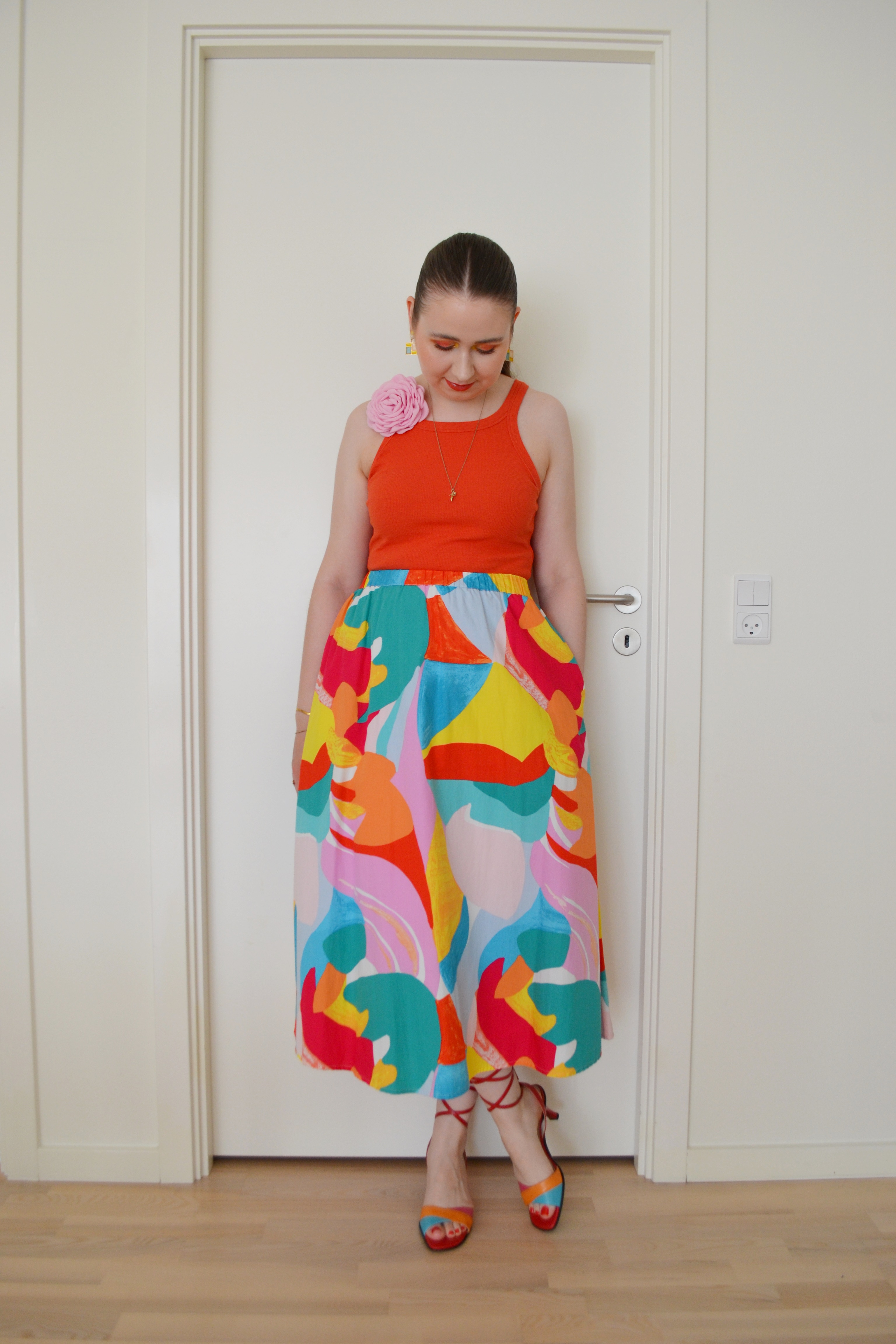 Colourful Carrie Posted on October 16, 2024 by Mucha-Lucha Here’s what I wore Friday June 28. I love how bright and colourful this look is, and I was obviously also inspired by Carrie Bradshaw when putting together this outfit. (Top – H&M, skirt – YAS, heels – second hand) Share this: Click to share on X (Opens in new window) X Click to share on Facebook (Opens in new window) Facebook Like Loading... Related