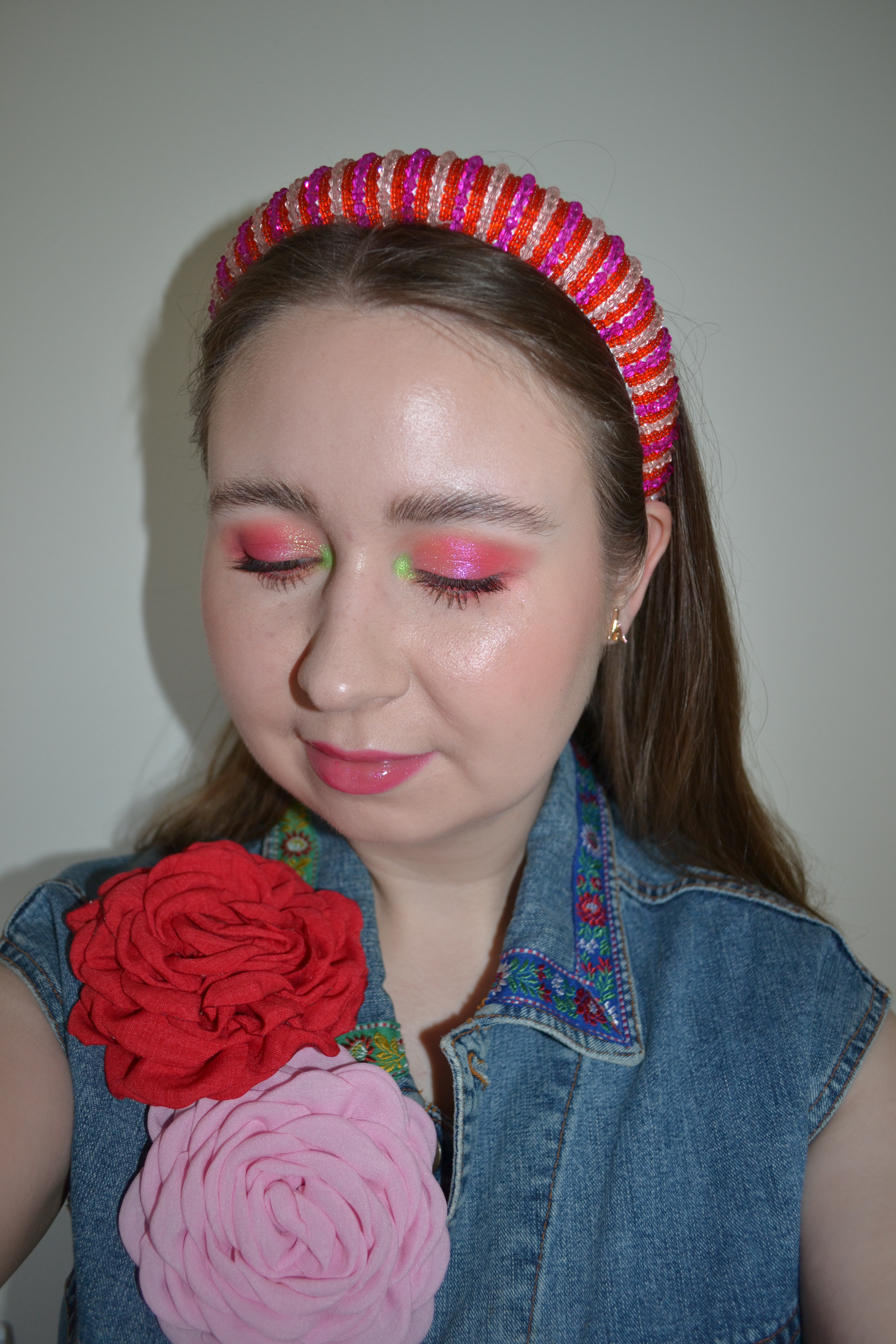 Here’s the make-up I wore with this outfit. A pop of bright green or yellow on the inner corner is a fun addition to an otherwise monochromatic-ish eye look.