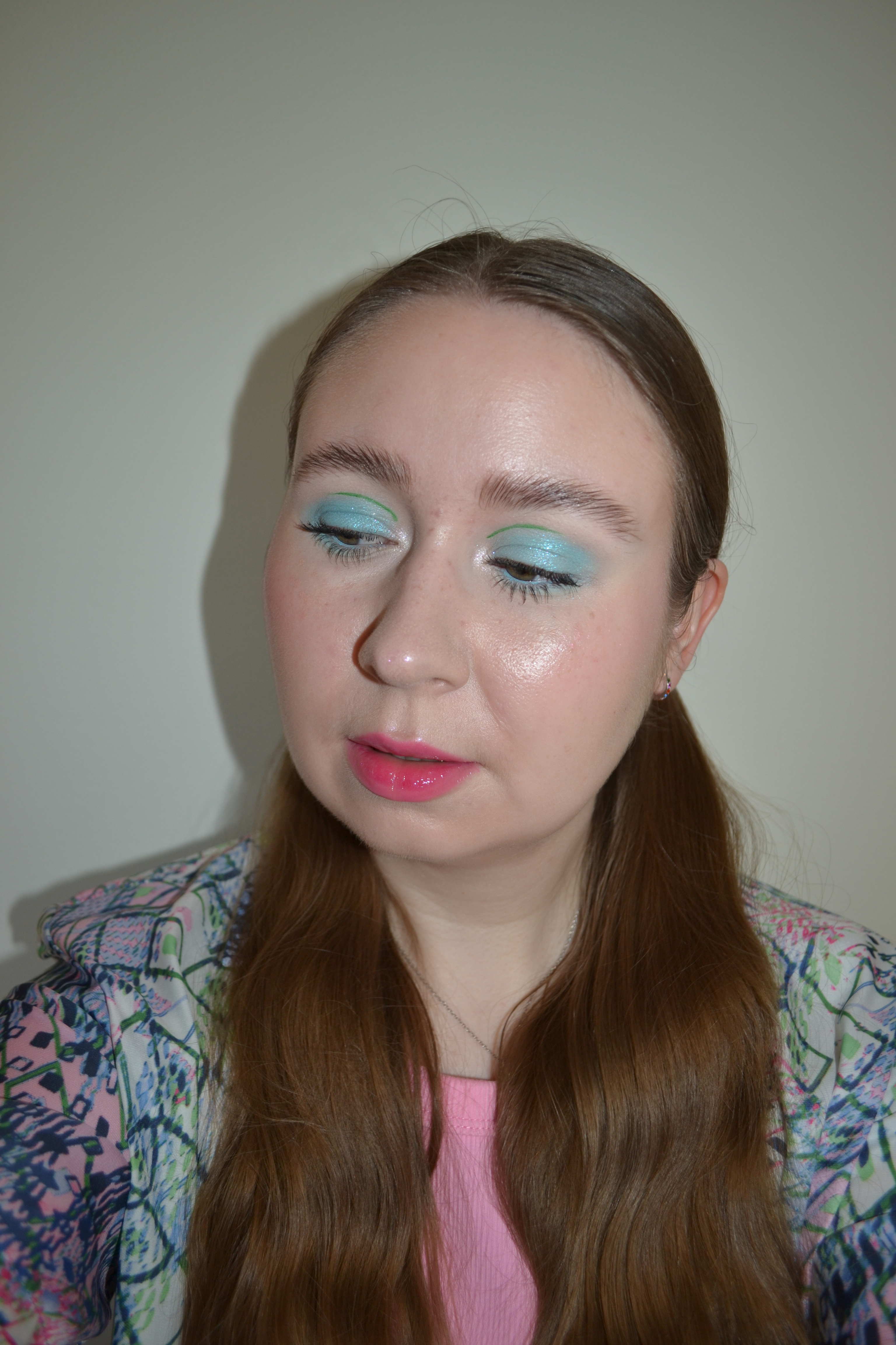 (Base: primer – e.l.f. Skin Suntouchable! Whoa Glow SPF 30 sunscreen (shade: Sunbeam), foundation – none, concealer – Huda Beauty #FAUXFILTER Luminous Matte liquid concealer (shade: 1.3G Marshmellow), powders – Laura Mercier Translucent Loose Setting Powder Tone Up in Rose + e.l.f. Cosmetics Halo Glow setting powder in Light, freckles – Essence Got A Crush On Apricots freckles pen (shade: 01 Après Apricots). Face make-up: bronzer – Colourpop Bronze Stix in Laguna Beach, blusher – Milk Makeup Cooling Water Jelly Tint in Burst, highlighter – Essence It’s Bubble Gum Fun liquid highlighter in 01 Bubble Gum’tastic. Eye make-up: base – MAC Pro Longwear Paint Pot in Painterly, eyeshadows – By BEAUTY BAY Disney Colour and BEAUTY BAY palette in Bambi (shades: Thumper Tail + Bambi Snow + Bambi Ice) + Colourpop Pokémon Super Shock shadow in Hydro Pump + Colourpop Disney Princess Super Shock shadow in I’m Wishing, mascaras – MAC Extended Play Gigablack Lash mascara + L’Oréal Lash Paradise mascara in Intense Black, eyeliners – Catrice The Joker liquid eyeliner in 020 Inkredible Jokes + Revolution x Bratz Cloe eye pencil. Eyebrows: Anastasia Beverly Hills Brow Freeze gel (with wand) + Maybelline Brow Ultra Slim pencil in Medium Brown. Lips: L.A. Girl Perfect Precision lip liner in Pinky + Milk Makeup Cooling Water Jelly Tint in Burst + Essence Juicy Bomb lip oil in 01 Coconut Crush)