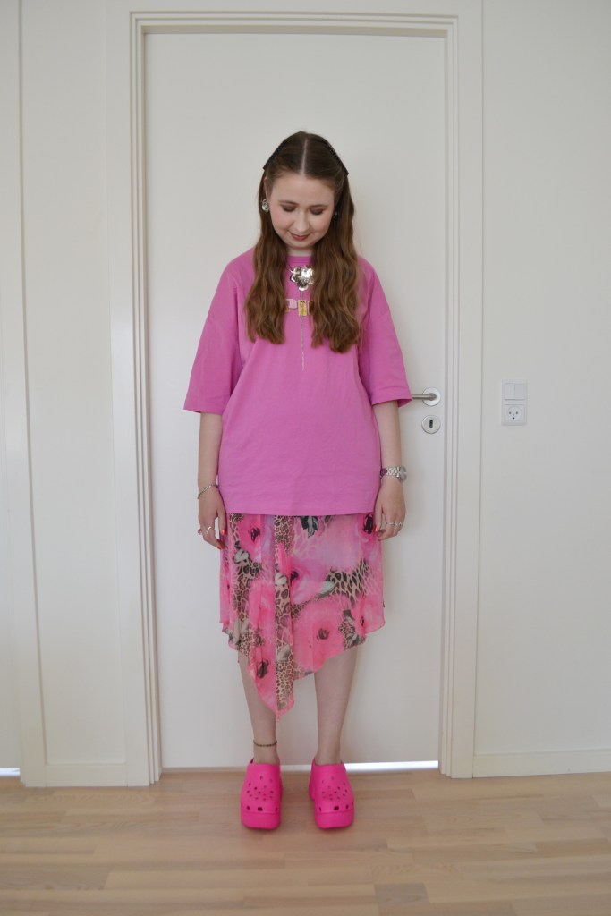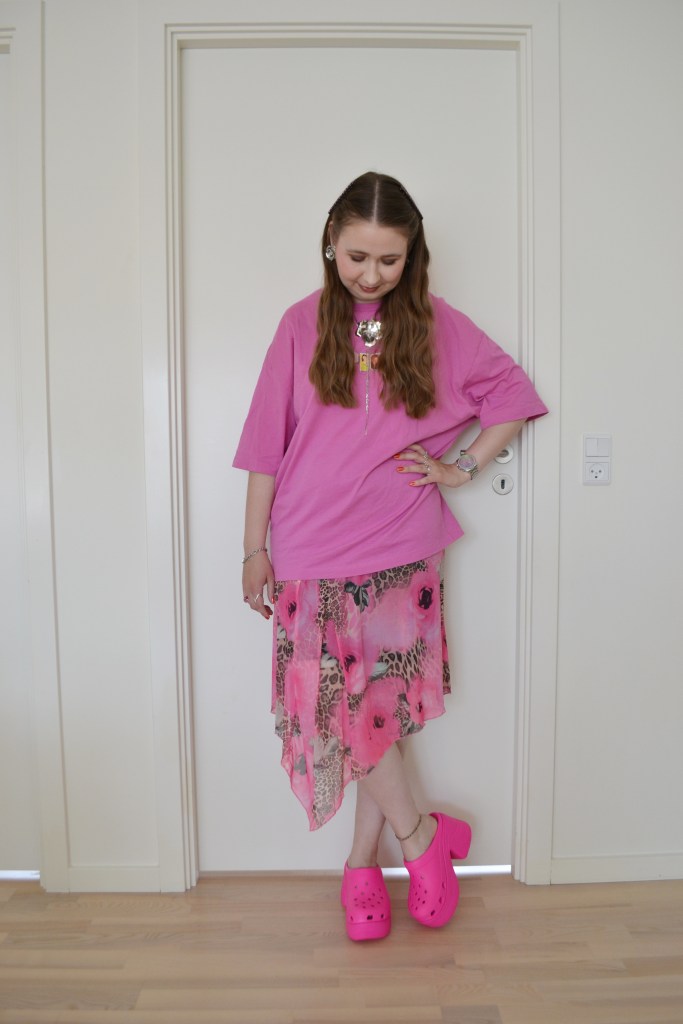 Liking all pink Posted on November 13, 2024 by Mucha-Lucha Here’s what I wore Thursday July 25. It’s not often that I wear this monochromatic of an outfit, but I’m really liking the all pink look. (T-shirt + skirt – Asos Design, shoes – Crocs) Share this: Click to share on X (Opens in new window) X Click to share on Facebook (Opens in new window) Facebook Like Loading... Related