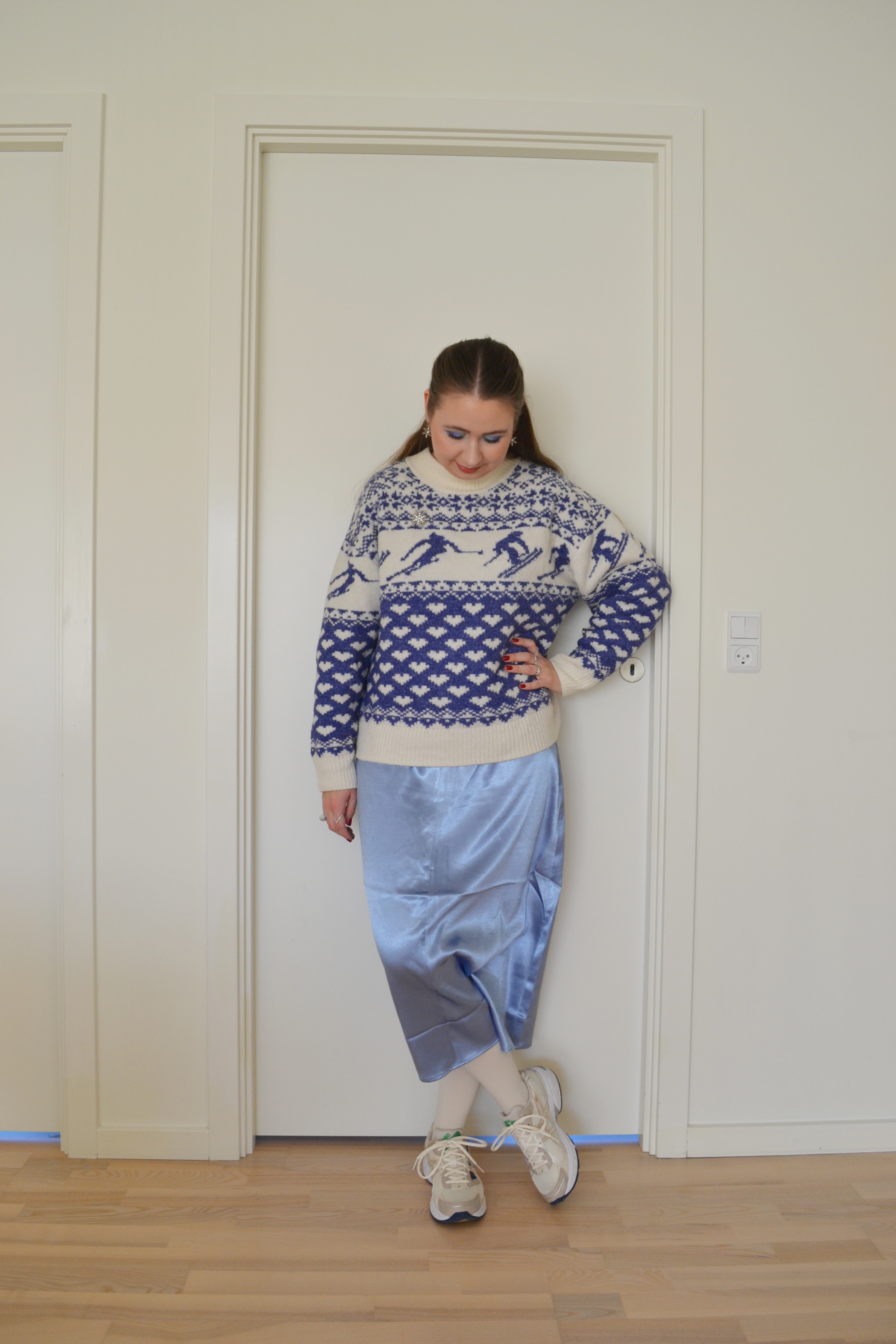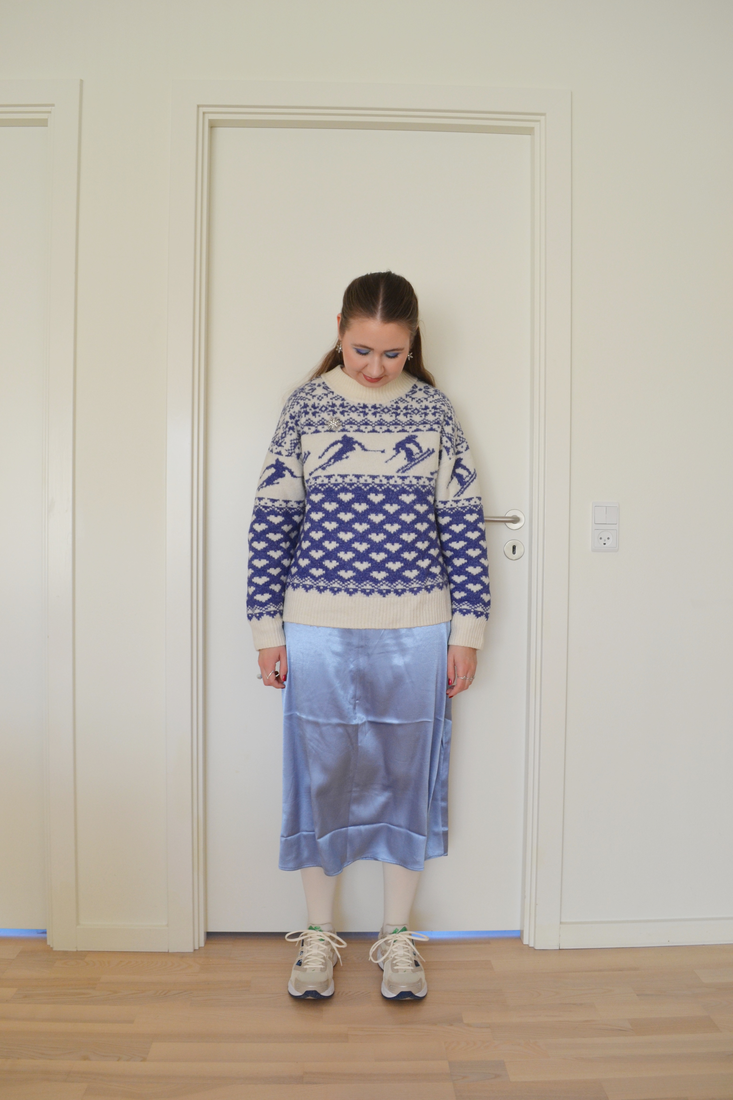 Icy blue and wintery Posted on November 26, 2024 by Mucha-Lucha Here’s what I wore Thursday November 21. I do enjoy an icy blue and wintery look around Christmas time. (Jumper + dress – H&M, tights – Calzedonia, sneakers – Asics) Share this: Click to share on X (Opens in new window) X Click to share on Facebook (Opens in new window) Facebook Like Loading... Related