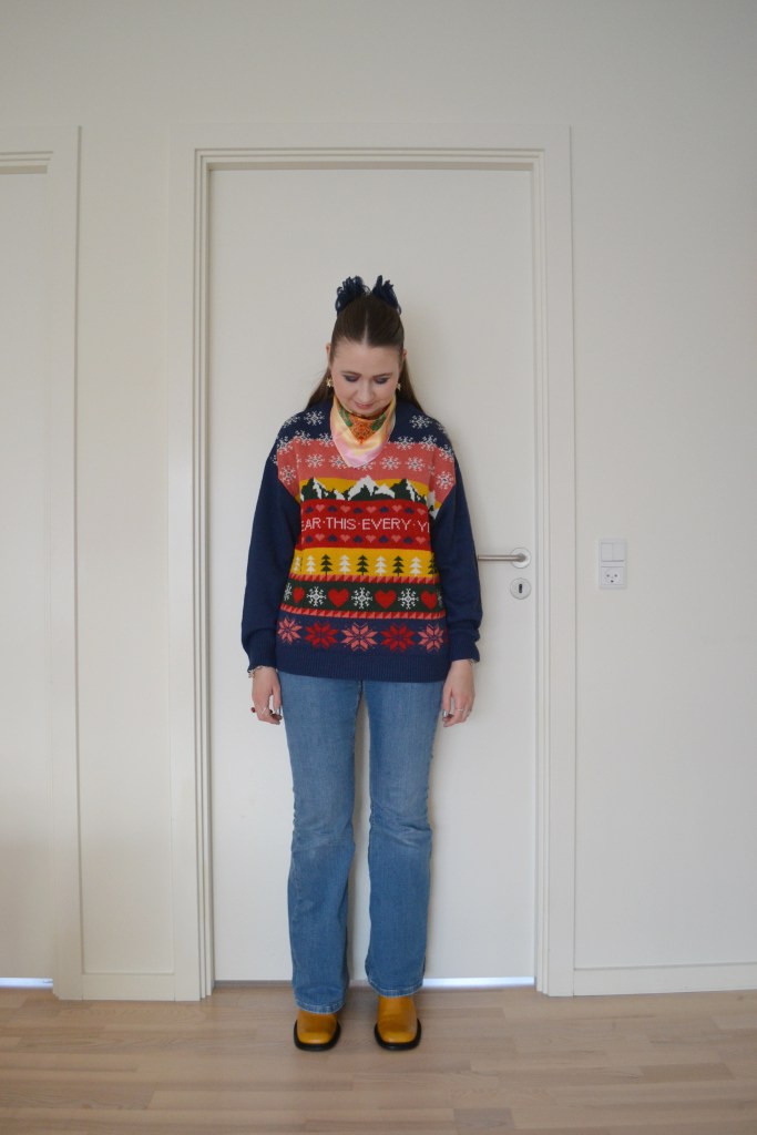 More than traditional Christmas colours Posted on December 3, 2024 by Mucha-Lucha Here’s what I wore Wednesday November 27. I love how this jumper has more colours than just the traditional Christmas colours. (Scarf – Oden’s Eye, jumper – Monki, jeans – Topshop, boots – Asos Design) Share this: Click to share on X (Opens in new window) X Click to share on Facebook (Opens in new window) Facebook Like Loading... Related