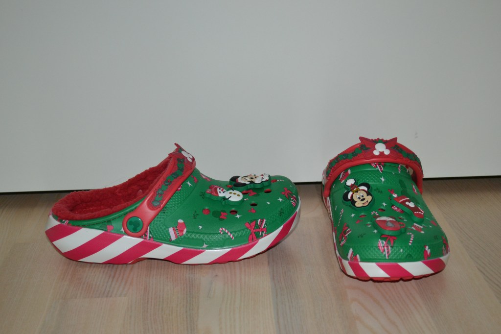 I actually purchased a pair of Christmas shoes this year. When I saw these Mickey Mouse Xmas Crocs, I knew I wanted them, but they were a little expensive, so I waited till they went on sale, and then I bought them. They’re just so festive, and they’re lined, so they’re really warm too.