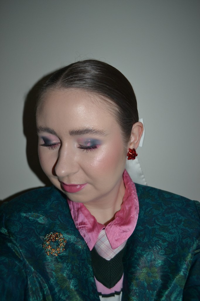 Here’s the make-up I wore with this outfit. Green and pink is just such a good colour combo, and I had a lot of fun with this make-up look.